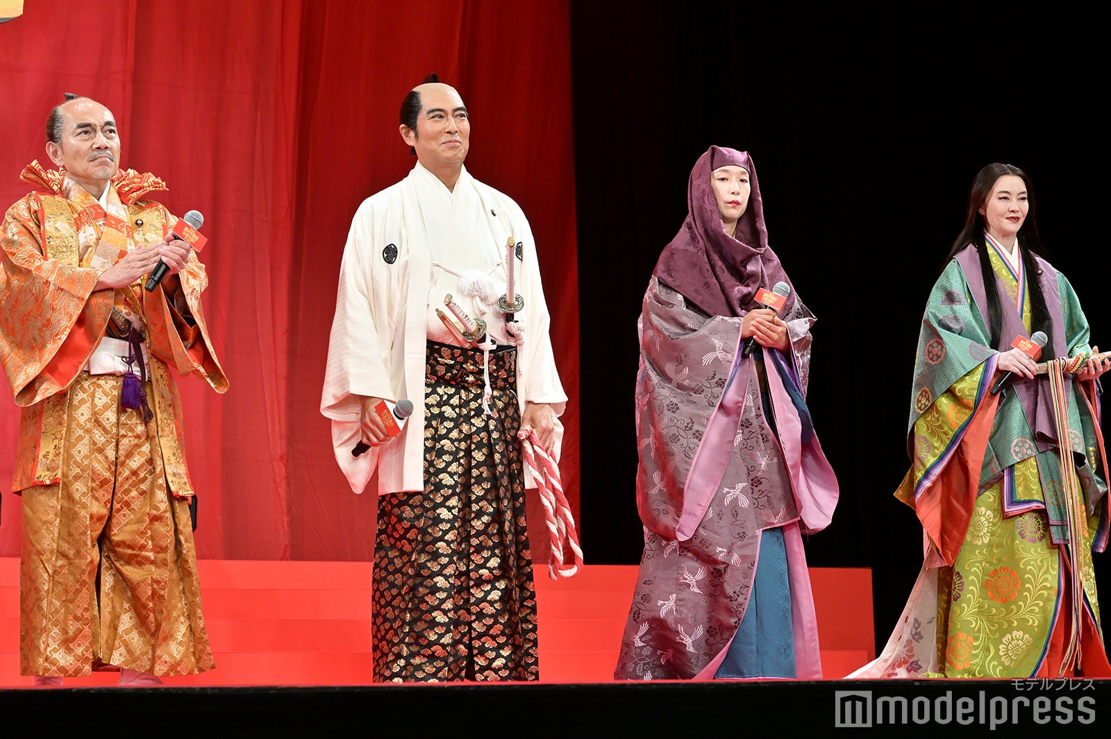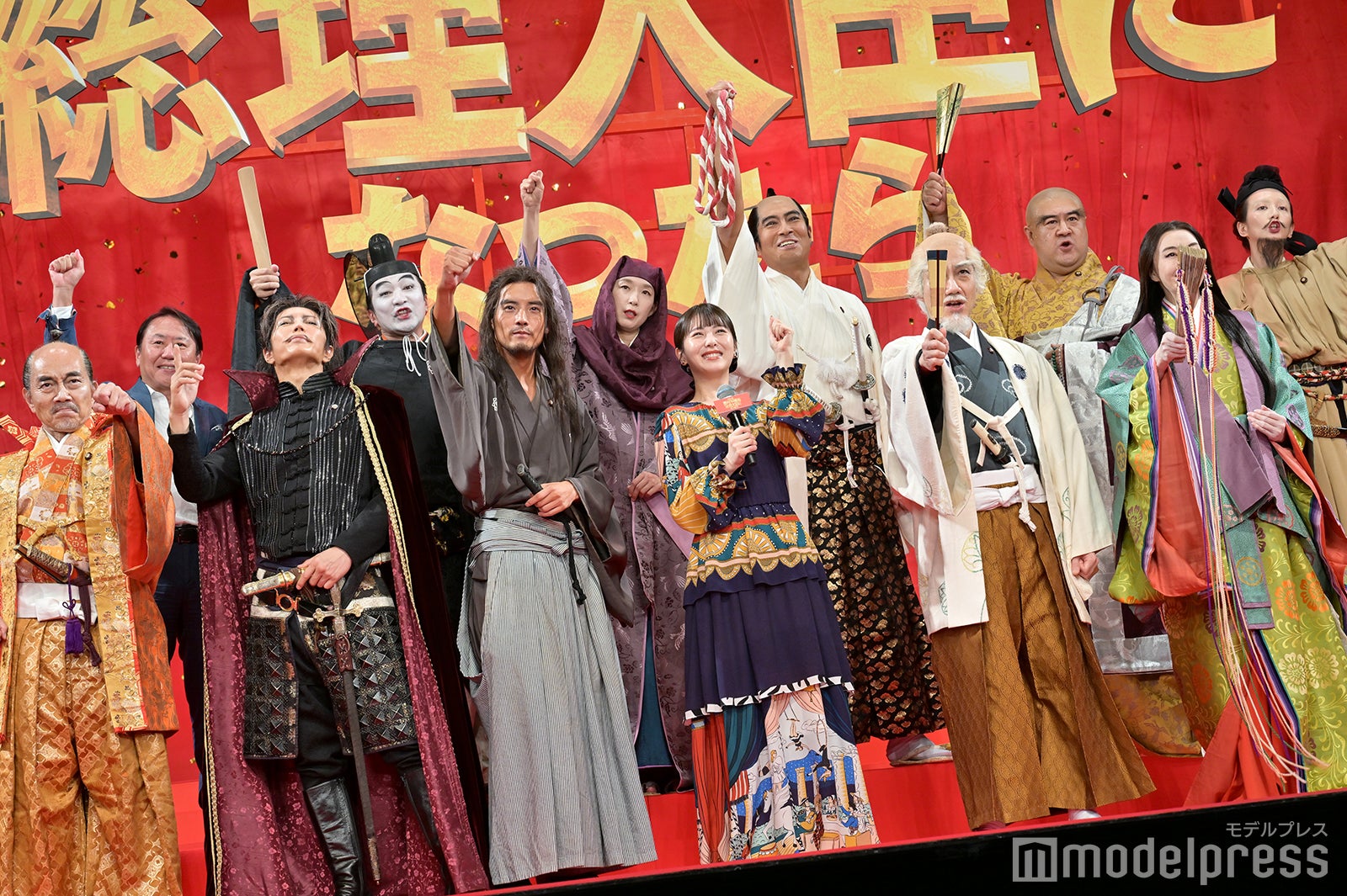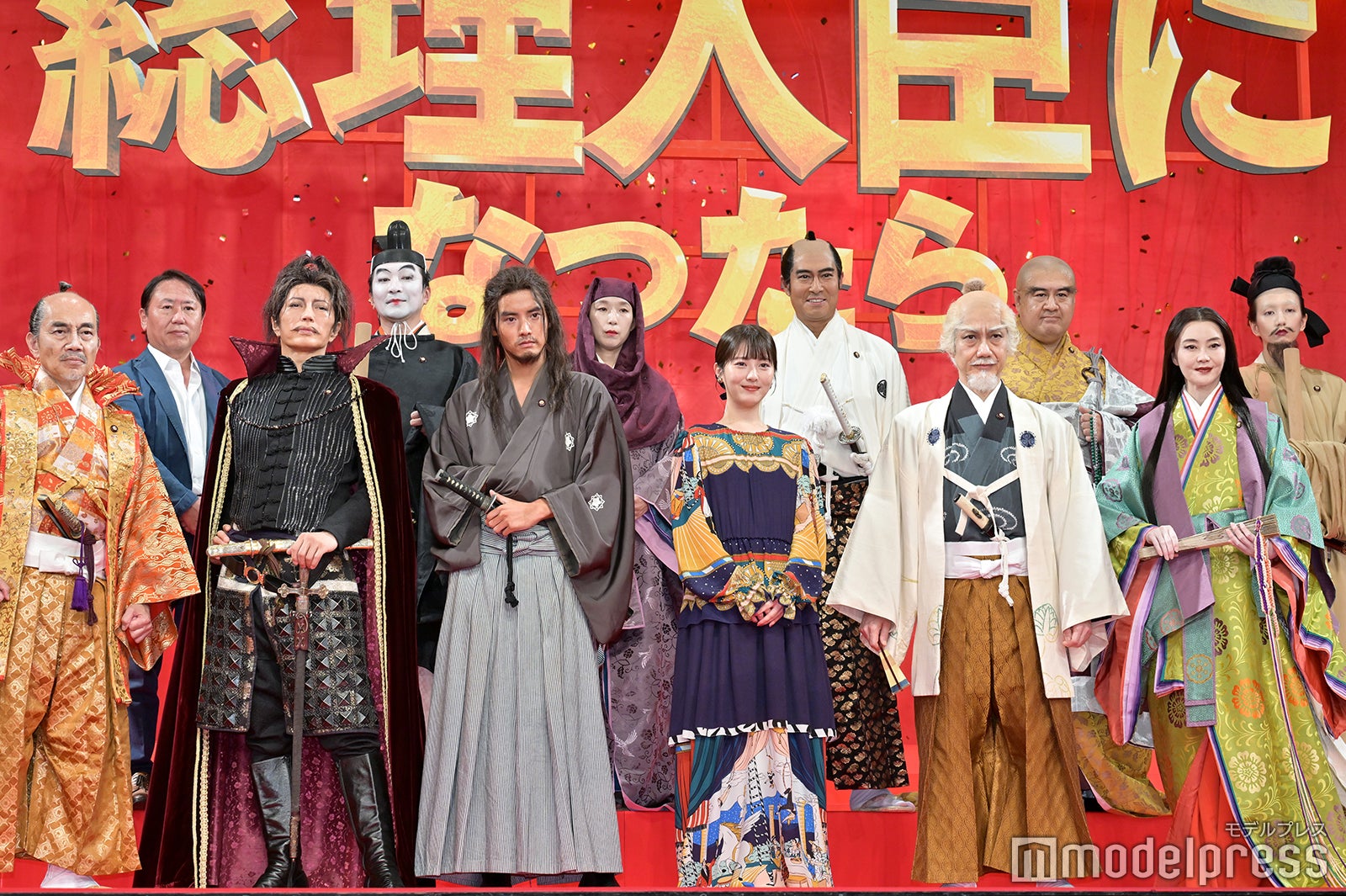 唯一、現代人役だった浜辺は、飲み会に参加できず「すごく羨ましいなぁと思ってお話を聞いていた」と悔しそうな表情。ただ、「楽しかったことは、大御所のみなさんがいる中で普通なら私が1番若手なので最初に(現場に)入るべきなのですが、みなさんのお支度時間が長いので、1番最後に入らせていただいた。いまも小手さんがすごく暑そうなのを見ると『私は心地いいんだけどな』って(笑)。ちょっと優越感がありました。すごく軽いです」と軽装でにんまりだった。