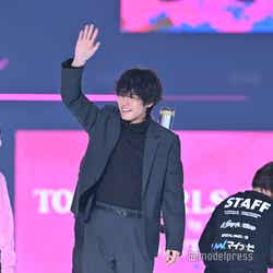 浜辺・佐野・倉、赤楚・山下・西垣の2組に分かれて客席から登場した6人は、観客からの声援に応えながらセンターステージに登場。ピンクとブラックで揃えた衣装に身を包み、親指を立てて「6」を再現したポーズや、全員で大きなハートを作るポーズなど、仲の良さが光るランウェイを届けた。撮影時のエピソードを求められた佐野は「みなさん見てわかると思うんですけど、仲がまあまあ良いんです」としたうえで「シリアスなシーンも多いんですけど楽しみながら和気あいあいとやらせていただきました」と振り返り。ステージでのポーズの発案者を聞かれるも、誰かはっきりしない様子から、MCのニューヨーク・屋敷裕政からは「“六人の嘘つきな俳優”!?」とツッコまれる場面もあった。