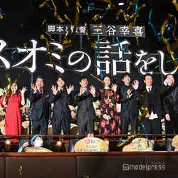 ステージに登壇した長澤は「ちょうど去年のいま頃、この映画は撮影していましたが、去年も暑かったなと思い出したり、すごくあっという間に撮影は終わってしまったけど、なんだかいい時間を過ごしたなという思い出に浸っていて、この作品がみなさまの元に届いてホッとしているところであります」と吐露し、スミオの2番目の夫で怪しげなYouTuber・十勝左衛門を演じた松坂は「上映後ということで、みなさんの表情を見てホッとしたというか、ようやくみなさんに届けることができたのかと思うと、すごく嬉しい気持ちでいっぱいです」と感慨深げに語った。三谷監督からの挑戦状のような台本と向き合い、そして挑戦を終えて完成した本作を見た感想を聞かれた長澤は「まだ冷静に見られていないので、映画館に見に行かないとなと思っています」と言いつつ、「今できることはやれたのかなと思っていますが、終わったあとも“スオミはもしかしたらこうだったかもしれない”ってスオミに対してまだまだ可能性を見出せる面白い役を演じさせてもらったなと思います」と充実感を覗かせた。