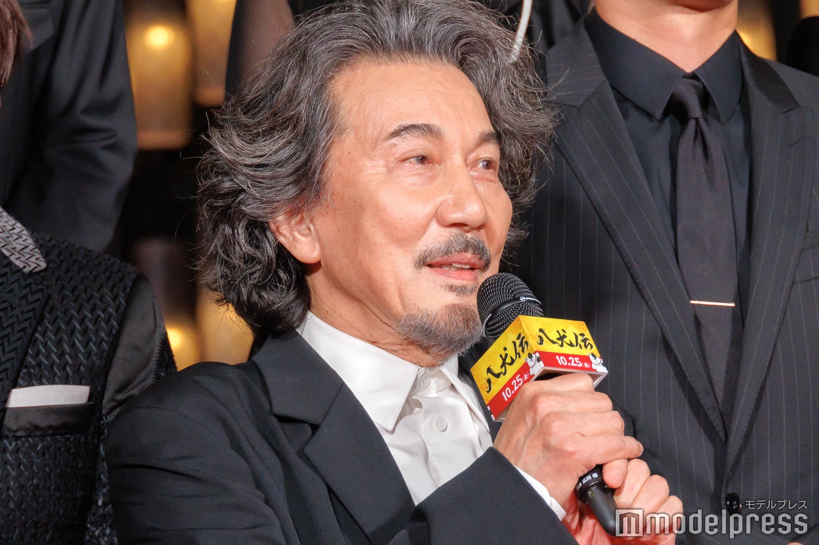 葛飾北斎を演じた内野は「こんなにたくさんの人が集まってくれてありがとうございます」と観客に感謝。続けて「八犬伝を書いた馬琴さんが実は北斎の絵にも影響を受けていたという話は私もまったく知らなかったんですけれども、今回、役所さん演じる馬琴さんに、絵を描きながらもどこか意地悪な、面白い北斎を演じています」と自身の役柄を伝えた。