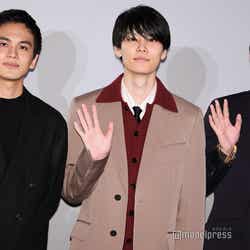 俳優の北村匠海、萩原利久、藤堂日向が27日、都内で開催されたショートフィルム『世界征服やめた』(2025年2月劇場公開)ワールドプレミア上映イベントに出席。萩原が、北村の監督としての姿を語った。