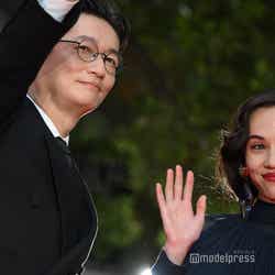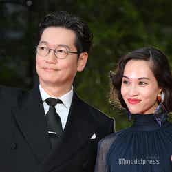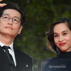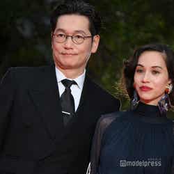 ウィメンズ・エンパワーメント部門の「徒花-ADABANA-」出演者として登壇した井浦、水原。素肌が透けるネイビーのシースルードレス姿の水原は、沿道の観客にハートポーズを作るなど笑顔でファンサービス。井浦はスーツ姿でメガネをかけ、クールなスタイリングを見せた。井浦新主演「徒花-ADABANA-」