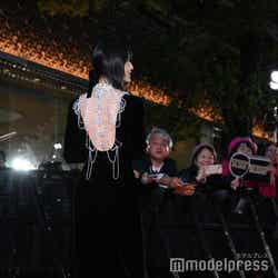 「コンペティション」部門「雨の中の慾情」の李杏は、フロントが大胆に開いたニットワンピースで美しいバストをチラリ。「アニメーション」部門「ルックバック」の吉田美月喜は、大胆なバックオープンのドレスで、美しい背中を披露。「アジアの未来」部門「ミッシング・チャイルド・ビデオテープ」の森田想は、アシンメトリーなミニスカートから、スラリと伸びた美しい脚を見せつけた。