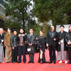 「TIFF」オープニング作品「十一人の賊軍」の出演者として、主演の山田孝之、仲野太賀、共演の佐久本宝、千原せいじ、一ノ瀬颯、野村周平、小柳亮太、本山力、監督の白石和彌氏とともに登場した鞘師。色気溢れるシースルーのロングドレスを身にまとい、スリットからはスラリと伸びた美しい脚を大胆に披露。ボリュームのあるレザーの袖がアクセントを加え、圧巻のオーラを見せた。山田孝之&仲野太賀W主演「十一人の賊軍」