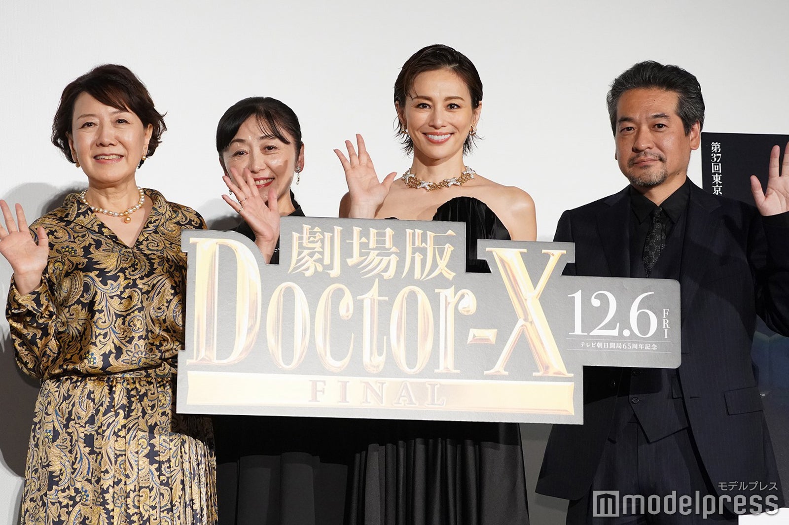 女優の米倉涼子が10月31日、都内にて開催された『劇場版ドクターX』ワールドプレミア舞台挨拶に、脚本の中園ミホ、内山聖子エグゼクティブプロデューサー、田村直己監督とともに出席。イベント中に2度の涙を流した。