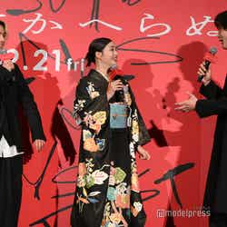 さらに、「最近出会ってハマったもの」を問われると、ともに出席した女優の広瀬すずは「ぶりしゃぶ」、俳優の木戸大聖は「生姜焼き」と回答し、魅力を熱弁。ラストの岡田に期待が高まる中、「1番最後に言うのはあれなんですけど、私、水を飲むことにハマってて」と話すと、広瀬は爆笑。「何言ってるかわからないですけど」とツッコまれながらも、岡田は「体がね、軽くなってるんですよ。少しずつ元気になって明るくなっているんです」「最近の岡田将生は元気!」と水の力を熱く語った。