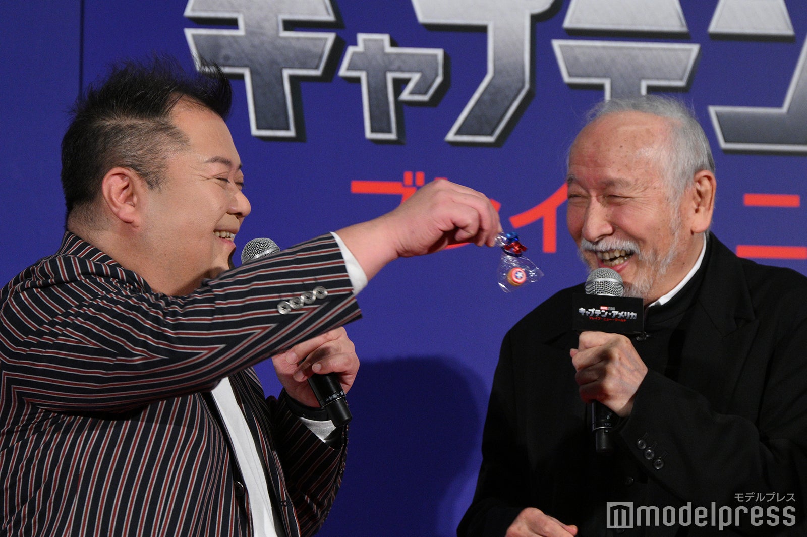 今作は“初代”キャプテン・アメリカことスティーブ・ロジャースから盾を託されたファルコンことサム・ウィルソン(アンソニー・マッキー)が主人公。サムを演じた溝端は、ともに出席した声優の森川智之から「継承した顔してる」と言われると「どういう顔!」と笑いつつ、「すごく重責はあります」とコメント。今作について「今までやっていた役がそのまま主役になって帰ってくるっていうのもないので」とし、「今までのファルコンの良さも大事だけど、キャプテンになったサム・ウィルソンはまた違うので。だから、収録はすごく大変でしたね。すごい苦労しました」と回顧した。この日は溝端、森川のほかに、俳優・声優の村井國夫、「アントマン」シリーズ・ルイス役のブラックマヨネーズ小杉竜一、「ブラックパンサー」シリーズ・シュリ役のももいろクローバーZ百田夏菜子が出席した。