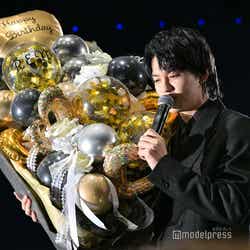 映画公開から2日後の2月16日は目黒の28歳の誕生日。佐野は1人でステージを降壇すると、目黒のメンバーカラーがあしらわれた大きな花束を持って客席通路から再び登場。少しクセのある歌い方のバースデーソングで会場を沸かし、満面の笑みで目黒へプレゼントした。サプライズは花束だけでなく、感謝の思いをつづった手紙も用意。「昨日の夜に書いたんですけど、気持ちがあふれて7枚書いちゃったんですよね(笑)。止まらなくなっちゃって。みんな大丈夫?7枚分聞けます?マジ手紙です」と明かす。「目黒蓮くんへ。めめ〜元気〜?いま僕がこれを読んでいるときも、たくさんに人前ですらっとかっこよく長い脚を見せつけていることでしょう。きれいな歯を輝かせて…」と明るいトーンで読み上げはじめた佐野だったが、「トリリオンゲームの撮影が終わってしばらく経ちますが、最近撮影当時に書いていた日記を読み返していました。目黒くんと過ごした日々がどれだけ貴重だったのか、改めて実感しています」と語ると、目が潤んだのか「やばい俺泣いちゃうかもしれない!早い早い早い!まだ1枚も終わってない。あと7枚もあるのに!頑張りたい!」と自分で自分をツッコんでいた。