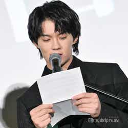 令嬢・黒龍キリカを演じた今田は、美脚と背中が大胆に披露されたドレスで登壇し、魅了。司会者から「衣装がすてき。キリカ様みたい」と声をかけられると、「ちょっとキリカを意識してみました」と照れ。役について「キリカみたいな役はたくさんできることはない。思う存分、社長令嬢をやりたいなって思って映画期間中も楽しく撮影できた」とにっこり。「ハルとキリカは、リンリンとガクの2人とは関係性が違う。大人2人、プラス2年経っているので2人の距離に余裕が生まれているなって感じていた。そこは監督と3人で話していましたが、余裕さとたまに切なさとそれがでたらいいなと思って演じていました」と話すと、目黒も「頭がキレる者同士の関係性がいいところなのかなって思います」と振り返った。目黒蓮、Snow Manメンバーと「みんなで抱き合った」