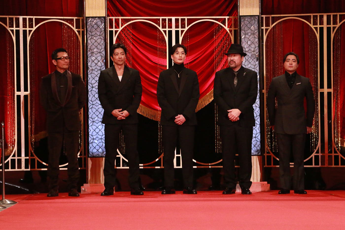 内野は「八犬伝」、大沢は「キングダム 大将軍の帰還」、岡田は「ラストマイル」、佐藤は「あんのこと」、山田は「正体」で優秀助演男優賞を受賞。岡田は黒のタートルネックにメガネを合わせてクールな雰囲気を漂わせ、大沢は胸元が開いたジャケットスタイルで色気を醸し出した。さらに山田は「Emporio Armani」のスーツ、佐藤は黒のハット、内野はえんじ色のスーツと、個性あふれるスタイリングでレッドカーペッドを闊歩した。