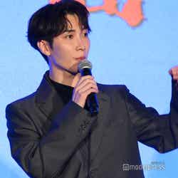 Snow Man渡辺翔太が3月16日、都内にて行われた主演映画「事故物件ゾク 恐い間取り」(7月25日公開)製作報告会見に、共演の畑芽育、吉田鋼太郎、中田秀夫監督とともに登壇。吉田と意気投合する場面があった。