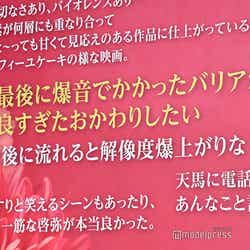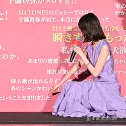 2018年12月より講談社「別冊フレンド」で連載が開始し、累計発行部数336万部を突破している人気コミック『お嬢と番犬くん』(講談社/はつはる著)を実写映画化した本作。極道の孫娘であることを隠し、“普通の青春と恋”をすることを固く心に決めた高校生のヒロインと、彼女のお世話係で過保護すぎるがゆえに年齢詐称をして高校に裏口入学までしてしまう若頭との恋愛模様を描いた溺愛ロマンティックコメディ。福本はヒロイン・瀬名垣一咲を、ジェシーは若頭・宇藤啓弥を演じている。今回のイベントでは、寄せられた反響が書かれたボードから、気になる感想をピックアップする企画も行われ、本作の主題歌でSixTONESの『バリア』について書かれた“最後に爆音でかかったバリアが良すぎたおかわりしたい”というメッセージを「最後に爆音“でかかった”バリアが良すぎたおかわりしたい」と読んだジェシー。これに客席から笑い声が上がると、ジェシーは「えっ、なんですか?笑ってる…」と戸惑い、改めて、同メッセージを読んだジェシーは「爆音で“かかった” ね。そういうことね(笑)」と区切る位置を間違えたことに気づき、「今の恥ずかしい…。熱くなってる(笑)」と照れ笑いを浮かべた。