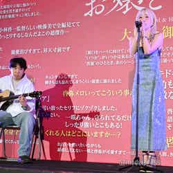 イベントでは、乃紫が一咲の心情を歌った挿入歌『銃口をハートに向けて』 を、アコースティックギターでの弾き語りバージョンで初生披露する一幕もあり、歌唱前に本作を見た感想を求められた乃紫は「とてもすてきなシーンで流していただいて、全編を通してはジェシーさんのビジュアルが原作の啓弥さんにそっくりで、頬骨がポイントかなと思いました。原作の啓弥さんの頬骨が男らしくて、ジェシーさんもそういうのをお持ちだなって」と語った。また、同曲は動物園のシーンで流れるそうで、同シーンについて福本は「動物園のシーンは楽しかったですよね。アドリブでいろんなところに行って、素直に楽しめたシーンでした」と回顧し、どんなアドリブをしたかと尋ねられたジェシーは「お弁当を食べさせるところとか、一咲がポニーをなでなでするんですけど、啓弥が一咲になでなでするとか」と紹介。これに福本は「私、あれ気づかなかったです。映像で初めて(知りました)。現場ではまったく気づいてなくて、映像で見て“私?”って思いました」と打ち明けると、ジェシーは「えっ、本当?(笑)」と目を丸くした。
