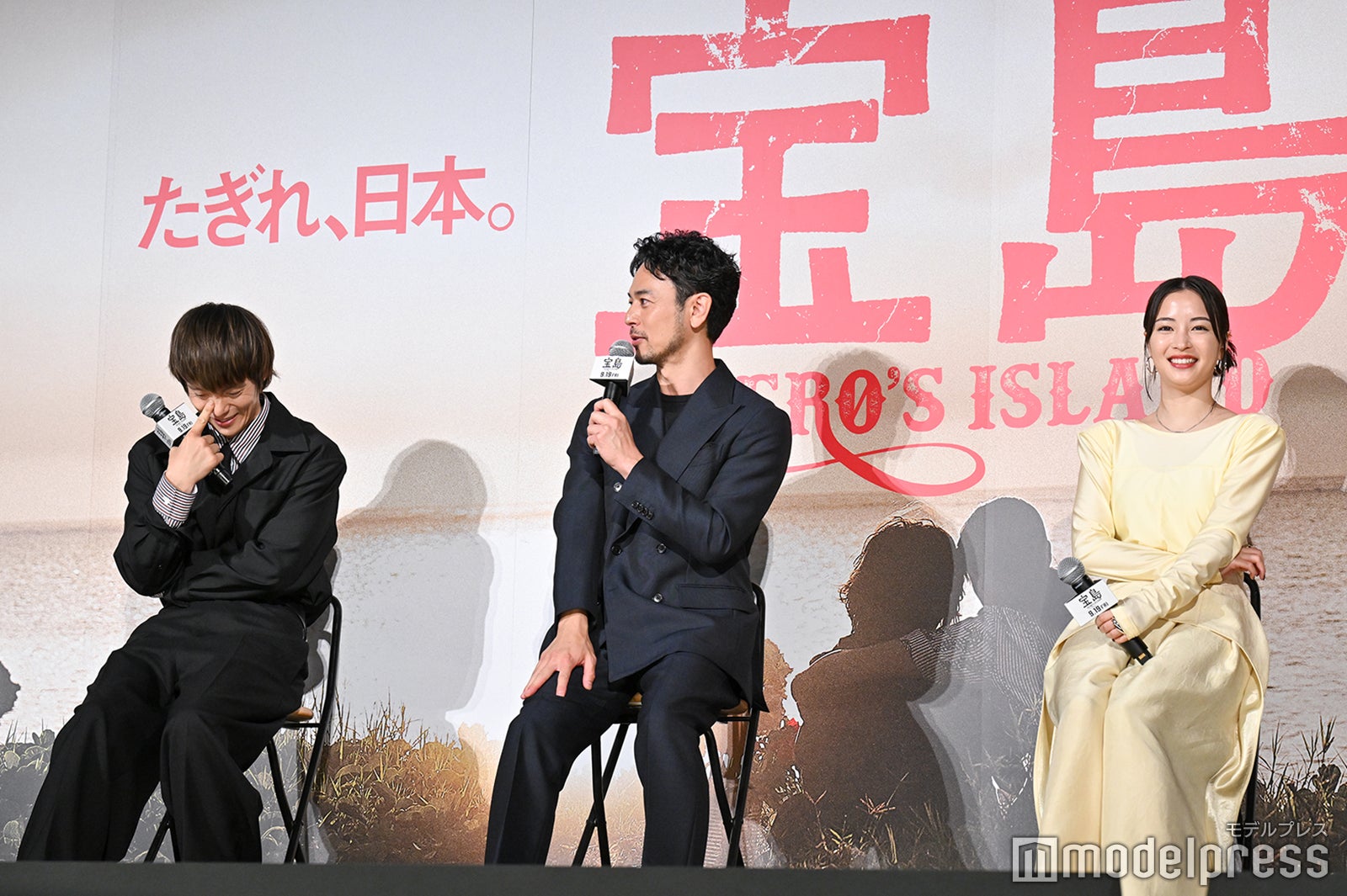 そして、主演の妻夫木が『宝島宣伝アンバサダー』に就任したことが発表され、この日時点で沖縄、静岡、富山、長野、北海道へ行くことが決まっているという妻夫木は「映画を撮っているときから、この映画はしっかりとみなさまの前に立って、生で会いに行ってしっかりと宣伝したいなと思って、宣伝って言い方も似合わないくらい、映画を超えている存在になっているんですけど、それを目の当たりにしていただきたい、体験してもらいたい、感じてもらいたいと思っているところがあります」と熱い思いを告白。「『ウォーターボーイズ』という映画をやったときに、当時、日本映画はあまりヒットしていなくて、いろんなところを監督と一緒に回ったんですよね。その都市都市でみんな映画を好きになってくれて、その都市都市で映画がみんなのものになっていくのを体験していて、あのときに感じたことをこの『宝島』という映画でもできないかなと思って、まさしくこの映画はそうあるべき姿なんじゃないかなって。この映画は沖縄を舞台にしていますけど、日本の物語です。そしてみなさんの物語だと思っています。人生のバトンの物語だと思っていて、受け継がれてきたものを僕たちは未来へバトンを渡さないといけないと思っているんです。だから僕はアンバサダーに就任しますけど、みなさんに直にこの映画を届けていって、映画を見てもらいたいと。(上映時間191分と)少し長めではありますけど、観る前に必ずトイレに行ってくれということは伝えたいと思います」と意気込んだ。また、以前、妻夫木が「この映画を映画だけに終わらせたくない」というコメントをしたことが話題に上り、そのコメントに込めた思いを聞かれると「映画って1つのビジネスで、お客さんにお金を払って見に来てもらって成立するものではあるんですよ。でも見てもらって“ああよかった”だけで終わりになってほしくないなと。映画で世界を変えられるわけではないと思っているんですけど、この作品にはそれを覆す生命力があるんじゃないかなと信じているんですよね」とコメント。「映画の力ってまだまだ底力があるんじゃないかって、僕は映画の力を信じていて、だからこそ今回もキャンペーンという形で全国の方に直に持って行きたいなと思っているんですよね。見た方々、それぞれ想いに違いはあるかもしれないけど、必ず“生きていかないといけない”と思える作品になっていると思います。それがどういう形になるか正直わかりませんが、過去がなかったことにはならないし、僕たちは前に進むしかないんだけど、その原動力には確実になると僕は思っています」と話した。(modelpress編集部)