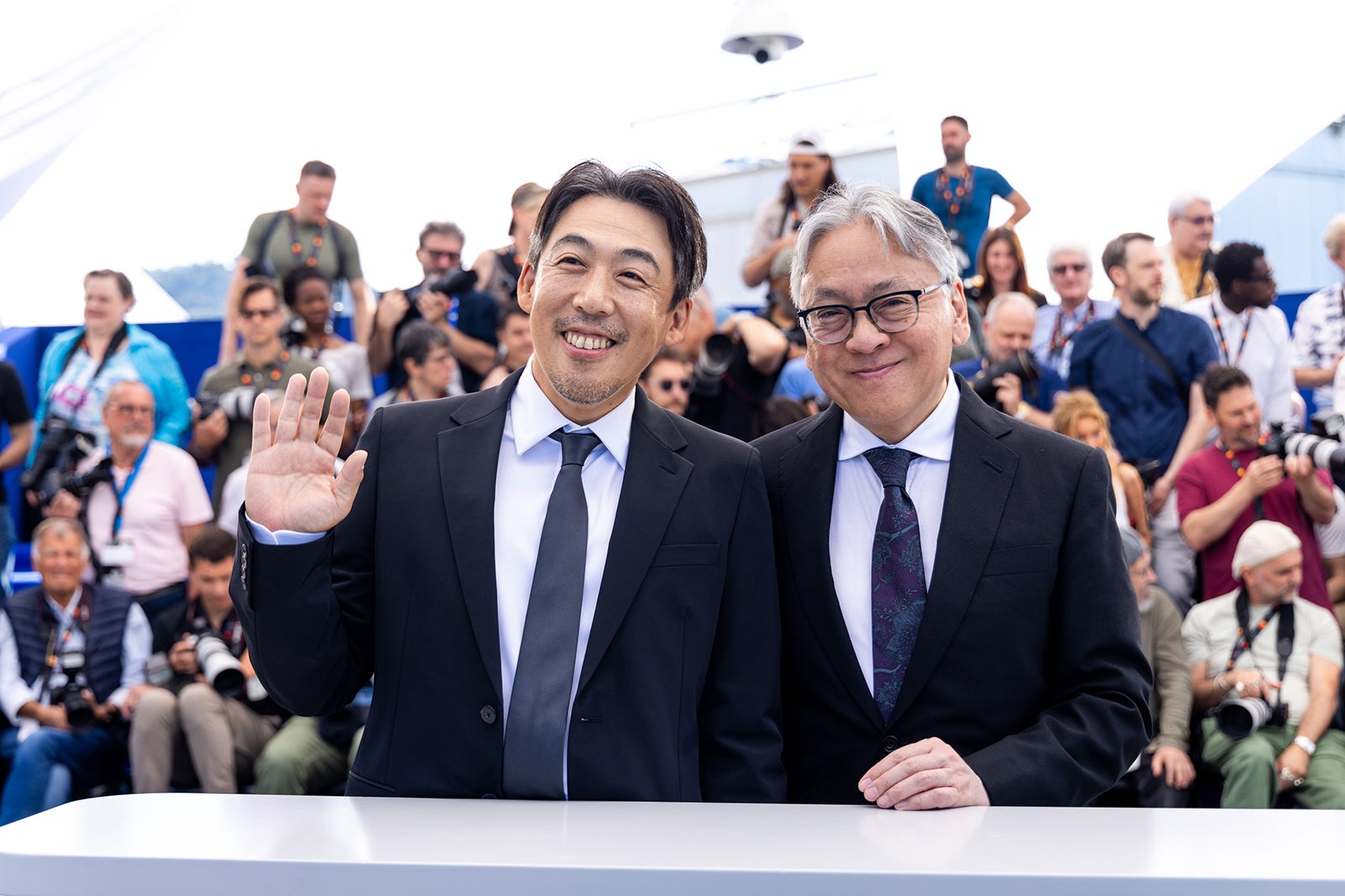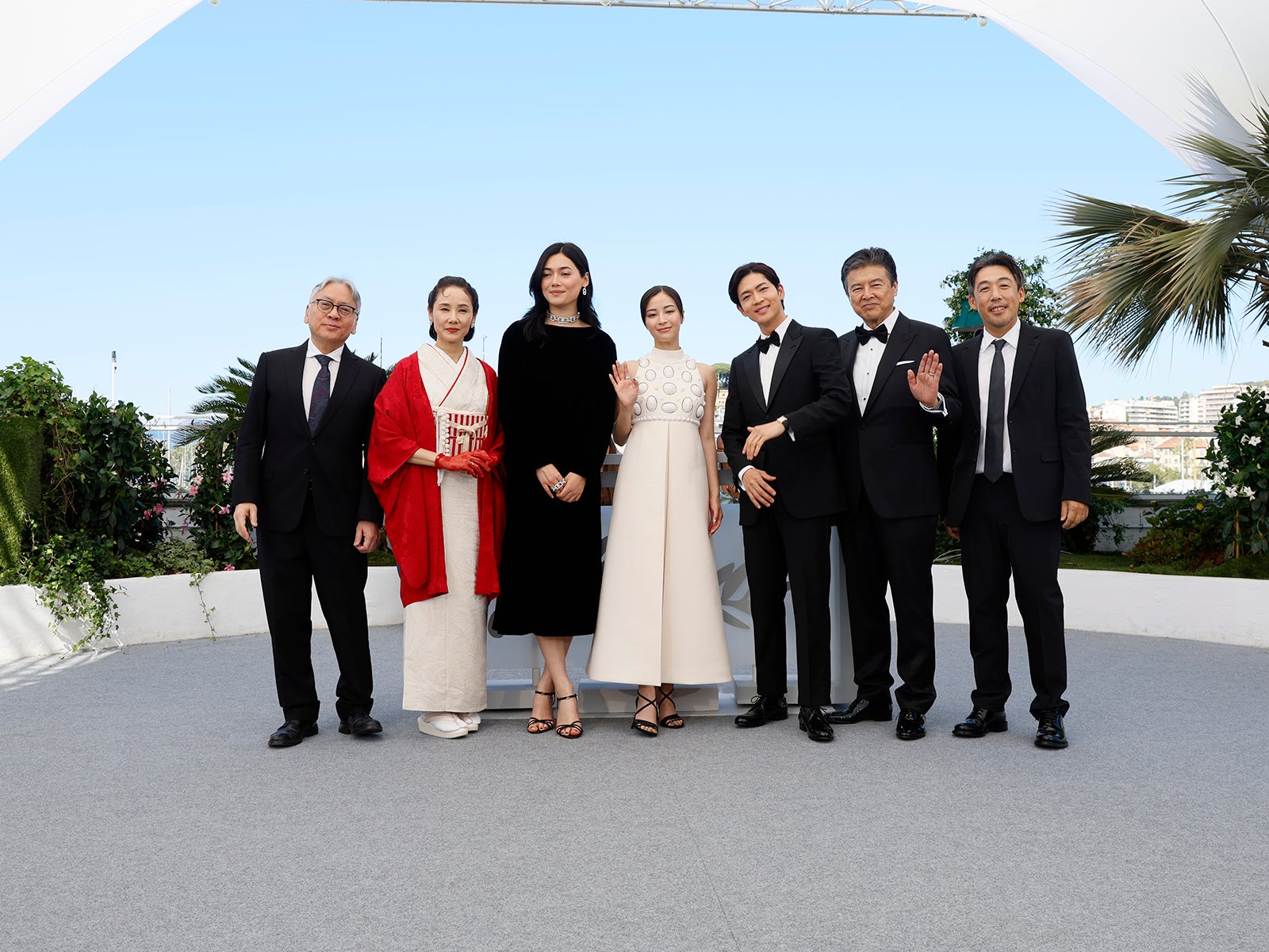この日は石川慶監督、原作者でありエグゼクティブ・プロデューサーのカズオ・イシグロ氏、吉田羊、カミラ・アイコ、松下洸平、三浦友和、そして広瀬の7人がカンヌ入り。海辺の街カンヌが輝く晴天が広がる中、公式上映に先駆けて行われたフォトコールでは、ルイ・ヴィトンの白いノースリーブのドレスに身を包んだ広瀬、赤白の「寿ぎ」着物スタイルの吉田、アルマーニのタキシード姿の松下と、HUGO BOSSのタキシードを着こなす三浦らキャスト陣に加え、プラダのフォーマルスーツに身を包んだ石川監督、そしてノーベル文学賞受賞作家のイシグロ氏らが登場。「ヒロセ!ヒロセ!」「スズー!」というコールや、視線を求める呼びかけも飛び交って、世界中のカメラマンが広瀬の視線を取り合う場面も。広瀬も手を振ったり、満面の笑顔で大勢のマスコミ陣の呼びかけに応えていた。日本を象徴するような赤と白の着物でポーズを取る吉田にも会場は盛り上がりを見せ、登場時にカメラマンたちに一礼する姿が印象的だった三浦は、逆にカメラマンたちを動画撮影するなどして会場を沸かせていた。1ショット撮影のラストを飾った松下も「マツシタ!」の呼びかけに手を振って撮影に応じ、撮影の最後には大きな拍手が起こった。石川監督とイシグロ氏の2ショット撮影ではイシグロ氏が石川の背中に手を回すなど、リラックスした様子で撮影に応じていた。
