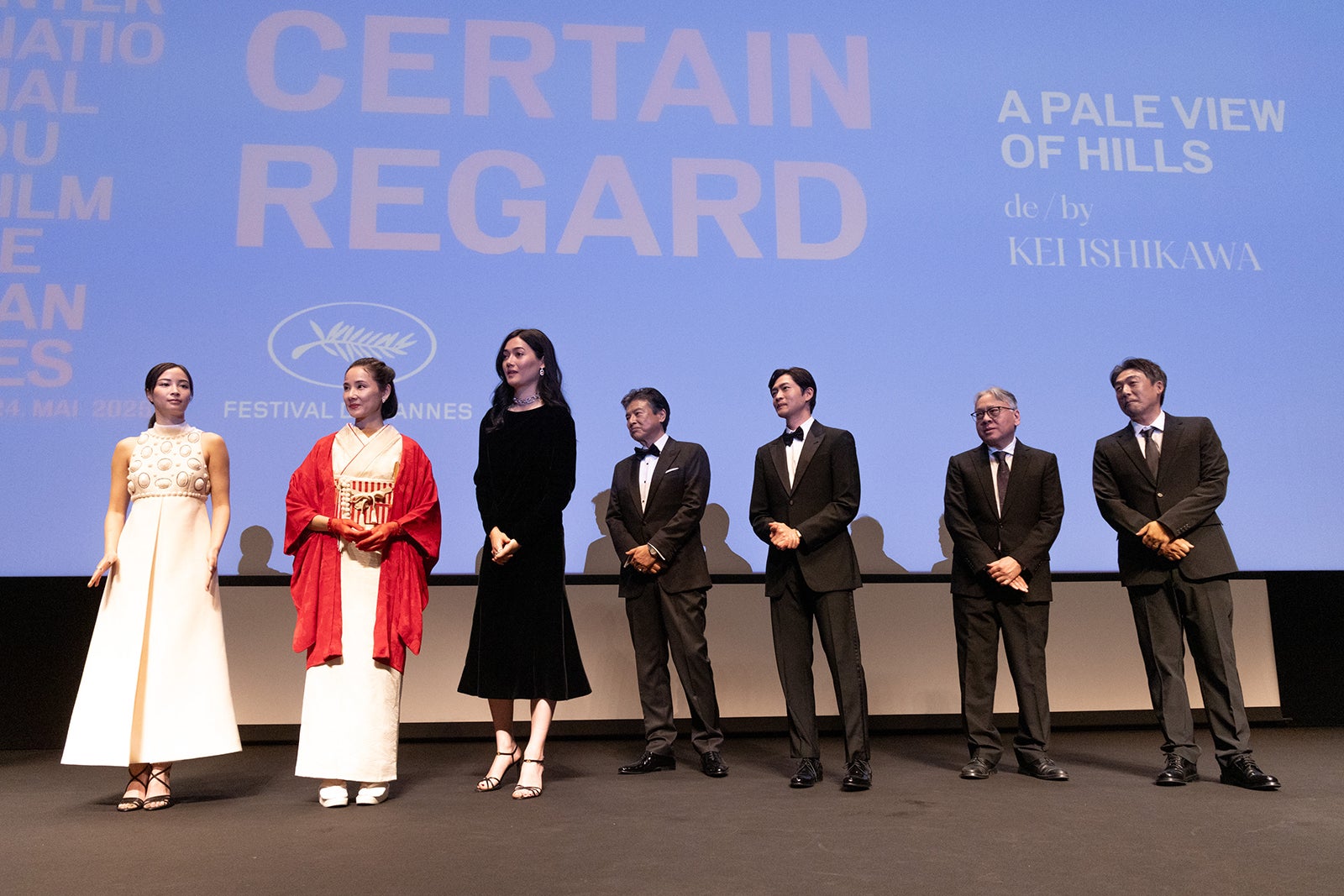 主演の広瀬は、2015年に参加した是枝裕和監督作『海街diary』以来10年ぶり2度⽬、吉田、松下、三浦は初めてのカンヌ国際映画祭への参加。本作の原作者であり、イシグロ氏は1994年にクリント・イーストウッドやカトリーヌ・ドヌーヴらと共にコンペティション部⾨の審査員を務めたが、出品者としての参加は今回が初となった。ヴェネチア国際映画祭などで高い評価を受ける石川監督もカンヌへは初の参加となり、1950年代の長崎と1980年代のイギリスで生きる女性たちを描いた本作のキャスト・スタッフが満を持して映画の聖地であるフランス・カンヌの地を踏んだ。
