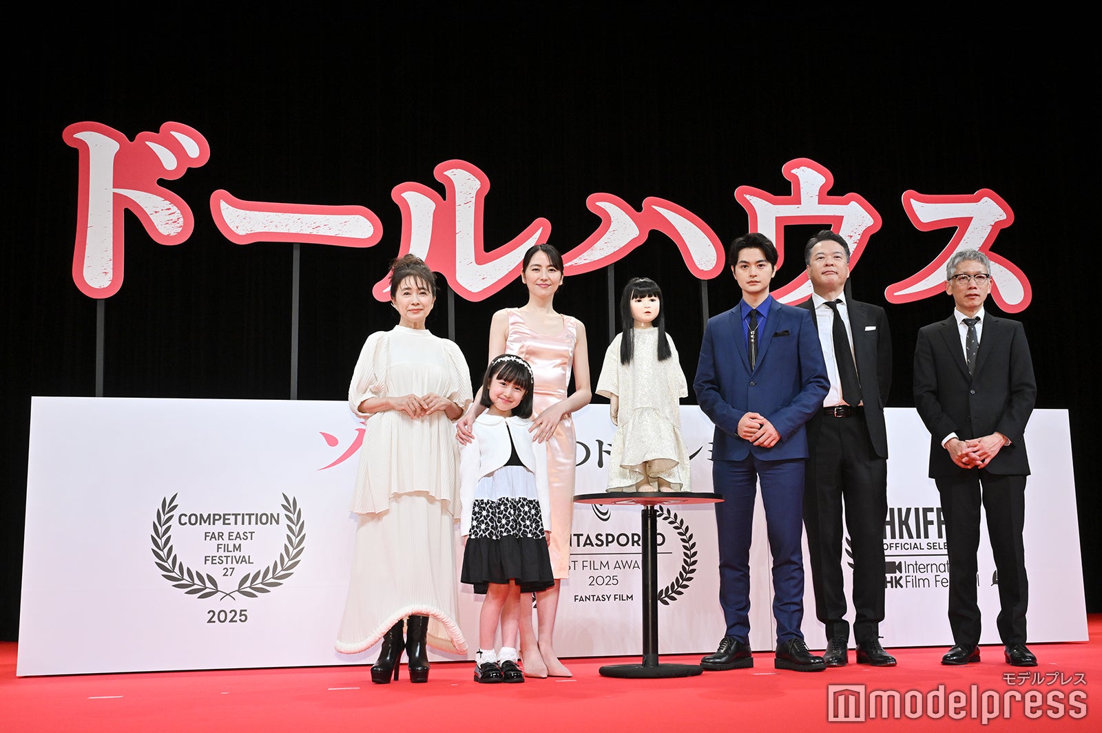 女優の長澤まさみが5月21日、都内で行われた映画「ドールハウス」(6月13日公開)のジャパンプレミアに、共演の瀬戸康史、田中哲司、池村碧彩、風吹ジュン、メガホンをとった矢口史靖監督とともに出席。本作で共演した“アヤちゃん人形”のエピソードを明かした。