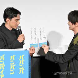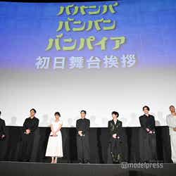 俳優の吉沢亮、板垣李光人が4日、都内で行われた映画「ババンババンバンバンパイア」初日舞台挨拶に、共演の原菜乃華、関口メンディー、満島真之介、眞栄田郷敦、メガホンをとった浜崎慎治監督とともに登壇。板垣が撮影中に可愛いと思った俳優を明かした。