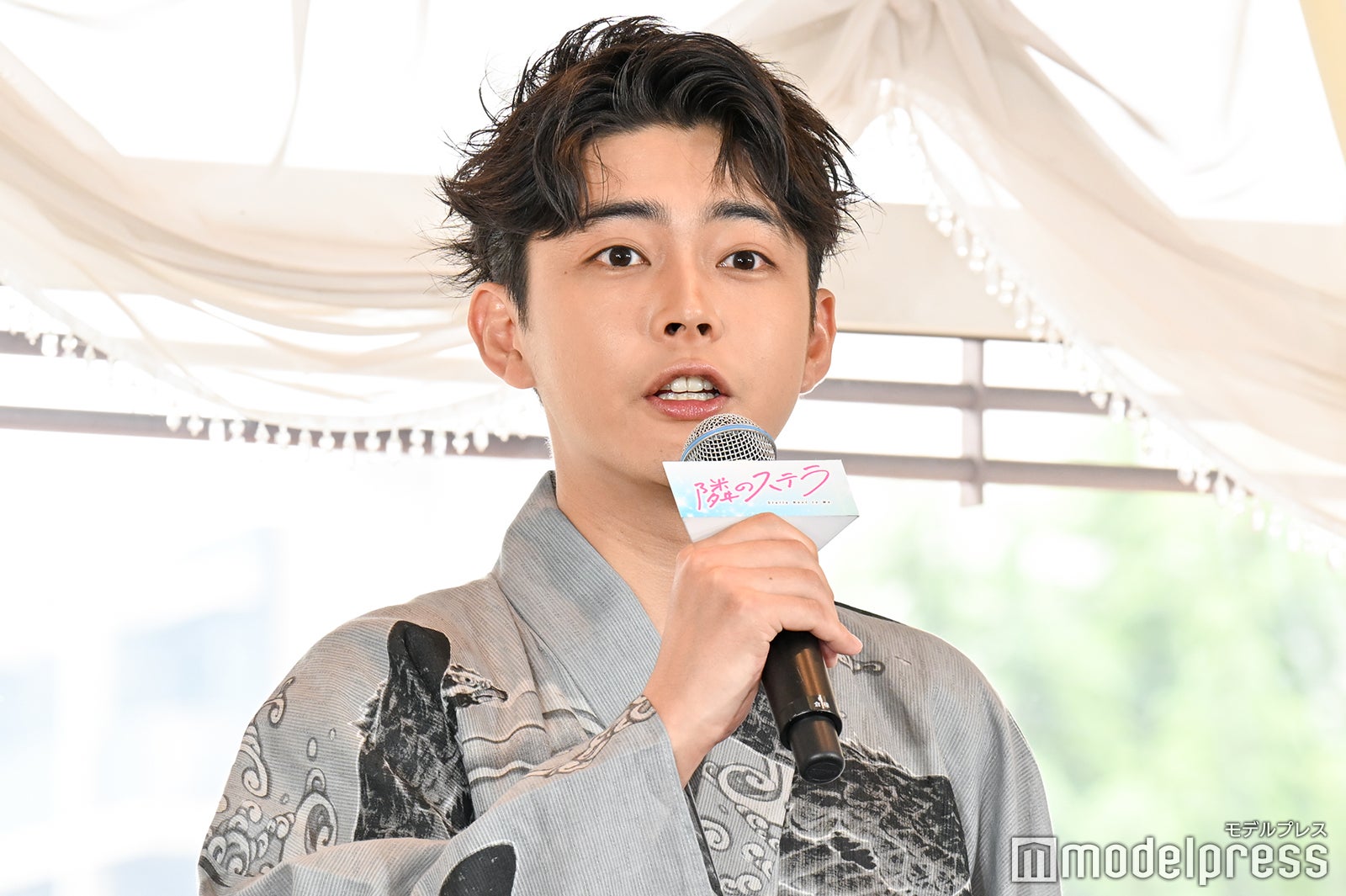 講談社「別冊フレンド」で人気連載中の同名漫画を実写映画化した本作。今をときめく若手俳優としてスターへの道を走り出した昴(八木)と、その幼なじみの女子高生・千明(福本)。幼なじみでありながらも“芸能人と一般人”というもどかしい関係となってしまった2人の、ピュアで真っ直ぐな恋の様子を描いた切ない王道ラブストーリーとなっている。久しぶりにキャスト陣が集合した感想を求められると、八木は「(撮影から)けっこう時間が空いたんですけど、現場でやっていた空気感だったりは継続していて、和気あいあいと楽しい時間を過ごしています」とコメント。福本は「こうしてみなさんで浴衣を着て集まることは初めてなので、すごく新鮮です」と笑顔で語った。
