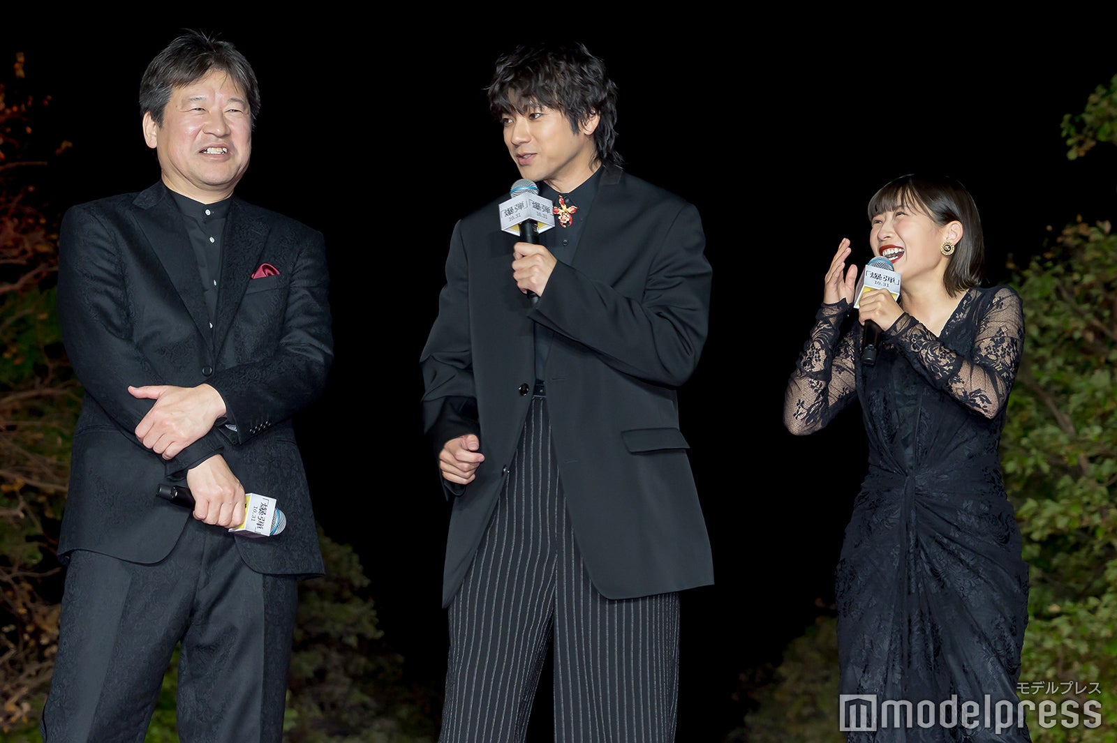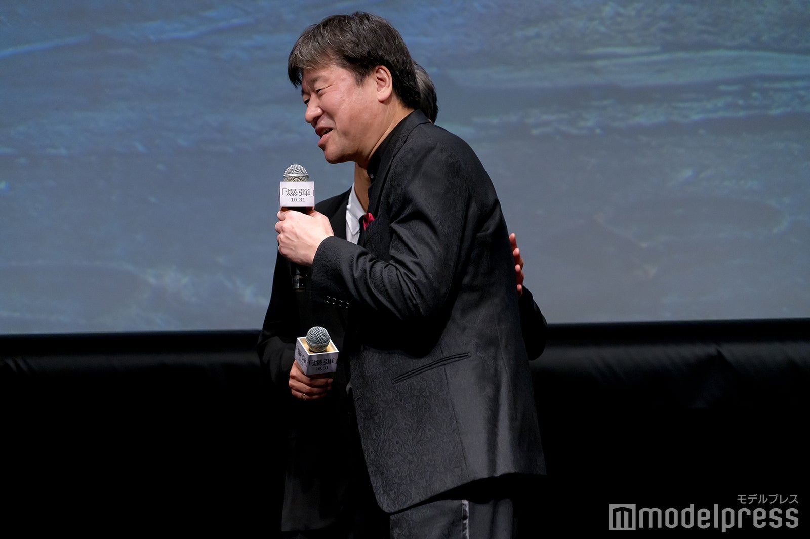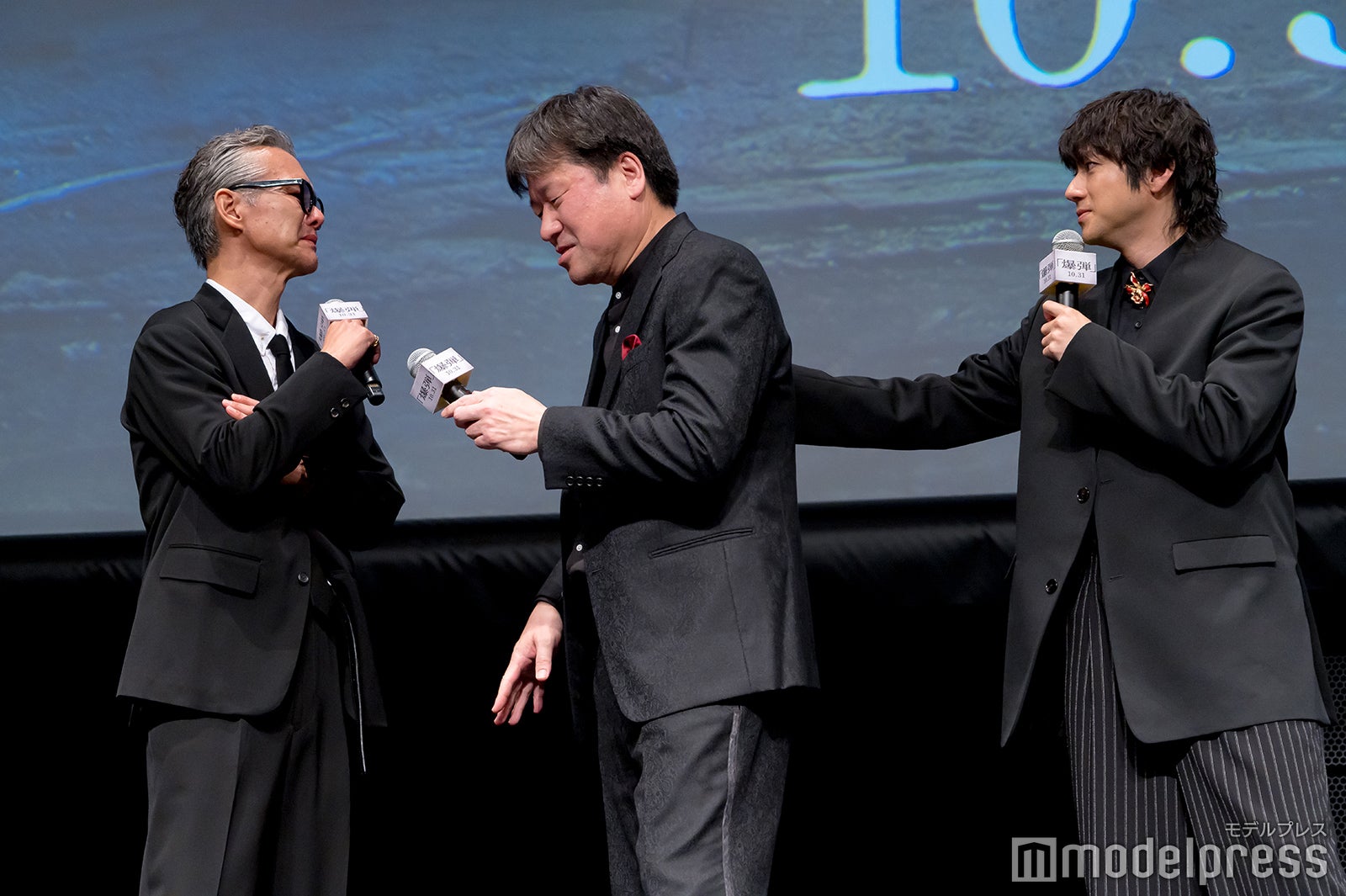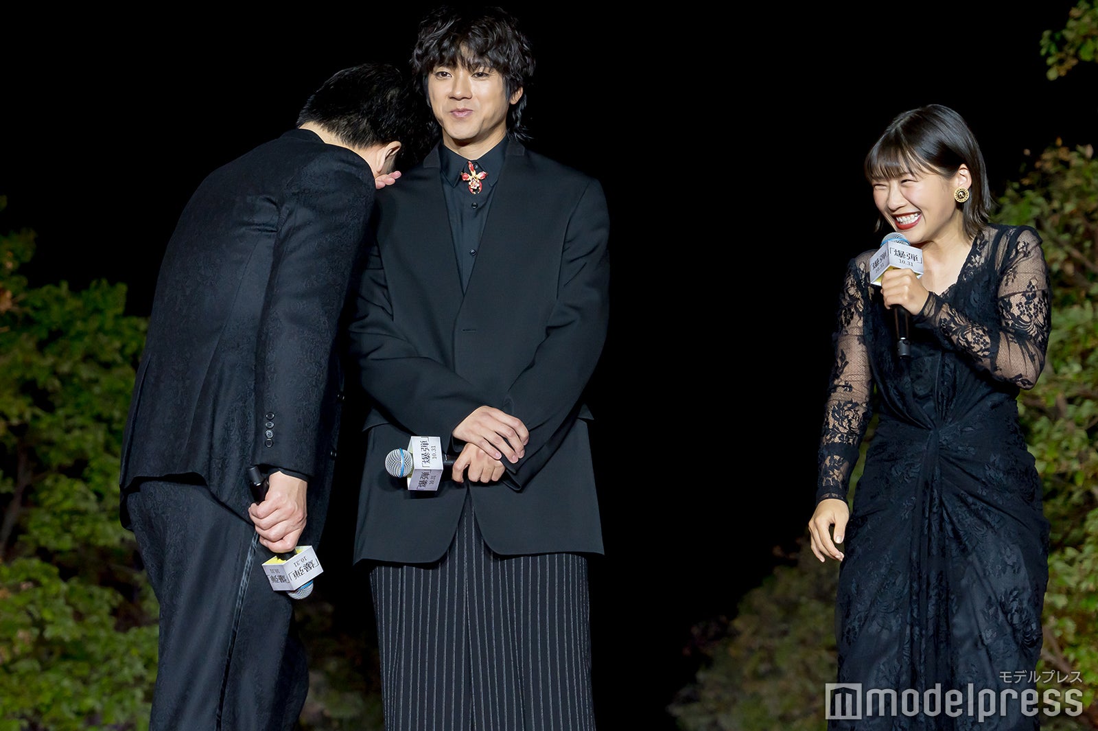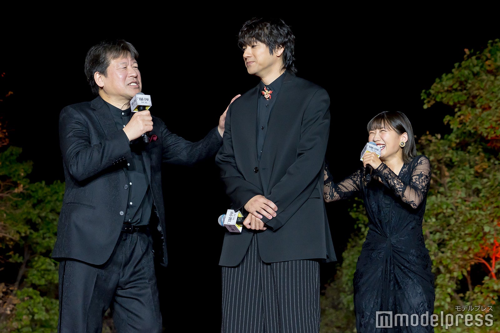 本作へ参加した思いを語る場面で渡部は「個人的には…」と口にしたところで涙。佐藤は「なんですの渡部さん!もらい泣きしそうになっちゃう」としながら「渡部さんはスターで、渡部さんの主役の作品で僕が脇を支えることがとても多くて。山田裕貴と僕がこの作品を背負っている自覚はあるんですけど、(渡部が)うれしそうに電話をしてきて。『お前を逆に支える側に立ててうれしい。俺、出るよ』って言ってくださった。それを思い出されたと思いますけど、いきなり泣き出すからびっくりしちゃった」と照れ笑い。渡部は「スズキタゴサクは二朗しか出来ないと思ってる。大切な作品に僕も出させてもらって、感慨深いものがありました」と思いを口にした。(modelpress編集部)