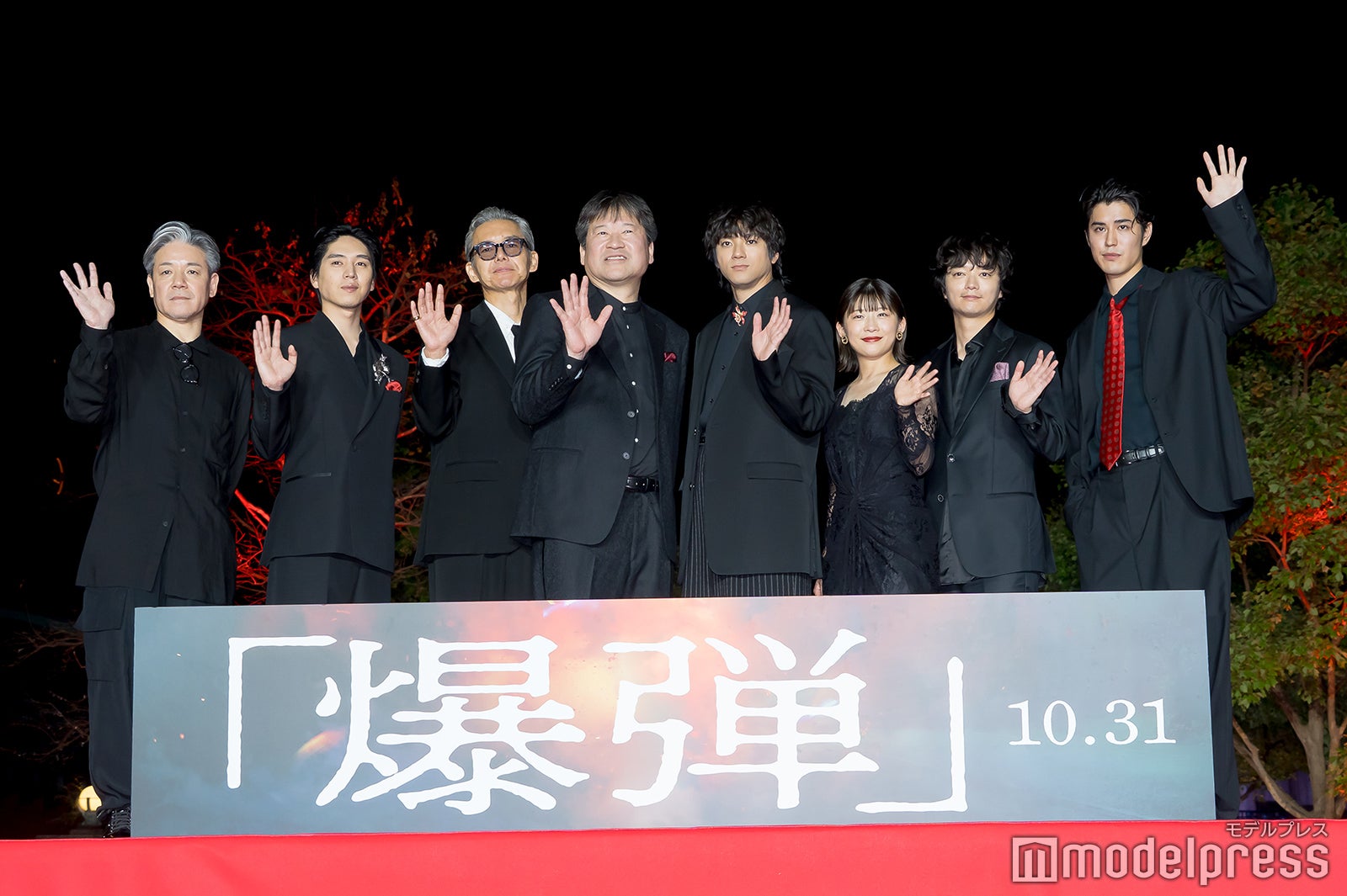 原作は、日本最大級のミステリーランキング『このミステリーがすごい!2023年版』(宝島社)、『ミステリが読みたい2023年版』(ハヤカワミステリマガジン2023年1月号)で堂々の1位を獲得したベストセラー小説『爆弾』。背筋が凍るような衝撃展開の連続で多くの読者を魅了し、その続編の『法廷占拠 爆弾2』も発売され話題を呼んでいる。主演を務めるのは山田。警視庁捜査一課でスズキタゴサクと真っ向から対峙する交渉人・類家役を熱演する。そして、伊藤が爆弾捜索に奔走する交番勤務の巡査・倖田役で出演。さらに、スズキタゴサクの過去を追う所轄の刑事・等々力役に染谷、類家の上司としてスズキタゴサクと交渉する清宮役に渡部、スズキタゴサク役を佐藤が演じる。山田らキャスト陣はレッドカーペットに登場し、集まったファンにサインを書いたり一緒に写真を撮ったりとファンサービス。観客からは大きな歓声が上がり、会場は熱気に包まれた。山田は「これだけたくさんの方が集まってくださって本当にうれしいです」と喜び「作品を見て、率直にものすごくおもしろいものができたな、と。スタッフさんやキャストのみなさんのおかげで本当にみなさんに何かを問いかけるような作品ができました。自信を持ってお届けできる気がしています」と自信をのぞかせた。