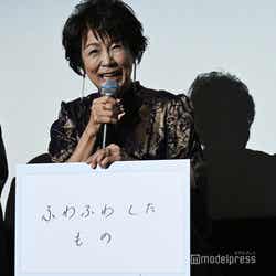 また、今回夫婦役を演じた市毛と長塚は仲良く手を取って登壇。50年前に婚約者同士を演じて以来の共演だといい、「ちょっとありえないというか。この映画の中でちょうど金婚式を迎えるんですけど、僕たちが婚約者の役を演じてちょうど今から50年」と運命的な巡り合わせに感動。“しあわせにしてくれるもの”では「私の妻が作ってくれる毎晩のご飯」と書き、実際の妻本人も来場していることを明かし、「脅迫みたいなもので書かざるを得なかった(笑)」と照れていた。長塚には「第17回TAMA映画賞」最優秀男優賞のお祝いにサプライズで豆原から花束が贈呈される場面もあった。