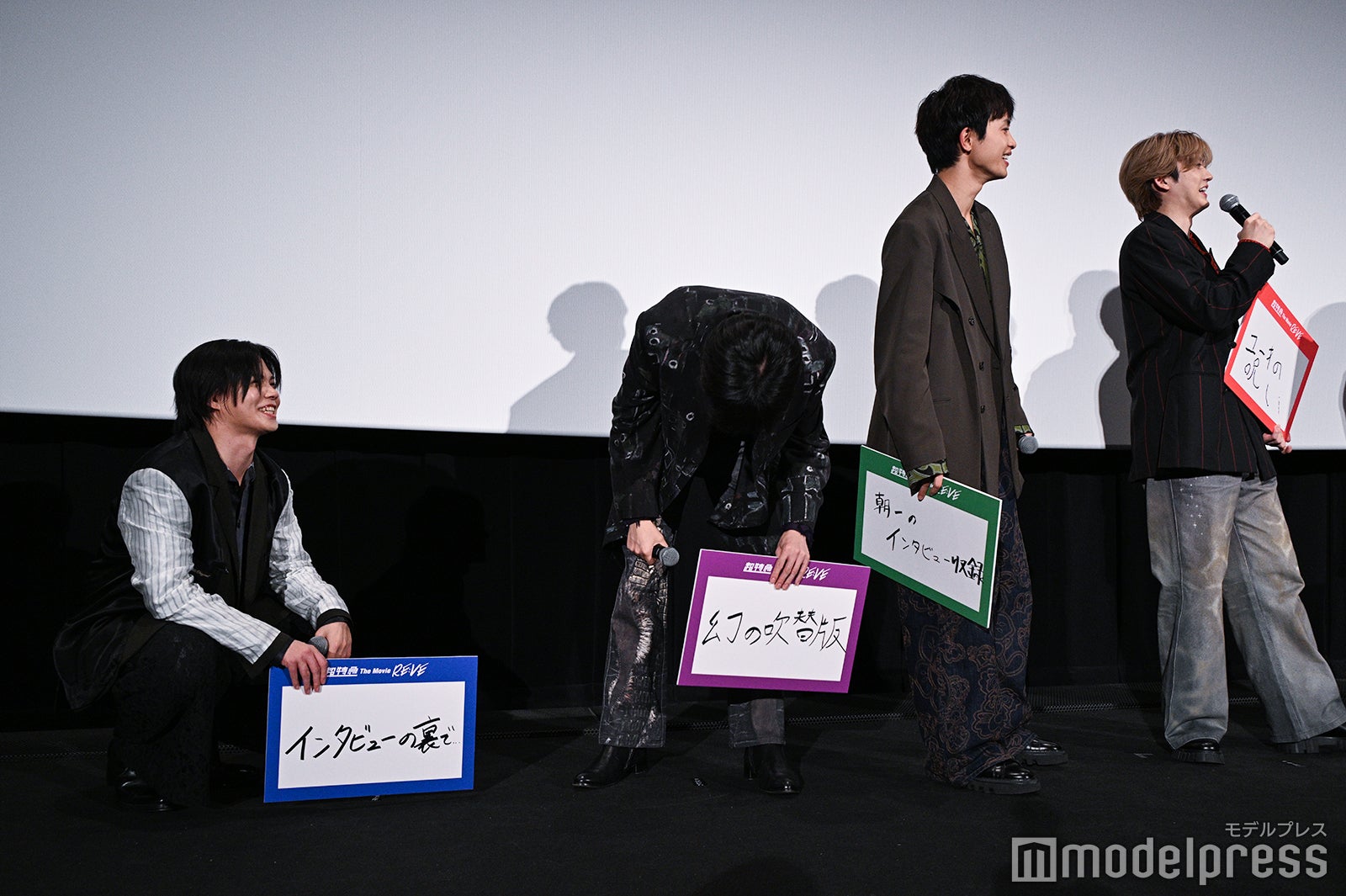 マサヒロは「本当に純粋に映画が決定した時は嬉しかったんですけど、ついに俺が映画に出る時が来たかと。時代が追いついたな」と自信満々にコメント。メンバーが爆笑する中、タクヤは「今のしっかり記事にしてください(笑)!」といい、カイも「“マサヒロついに映画デビュー”と(笑)!」と報道陣に呼びかけていた。