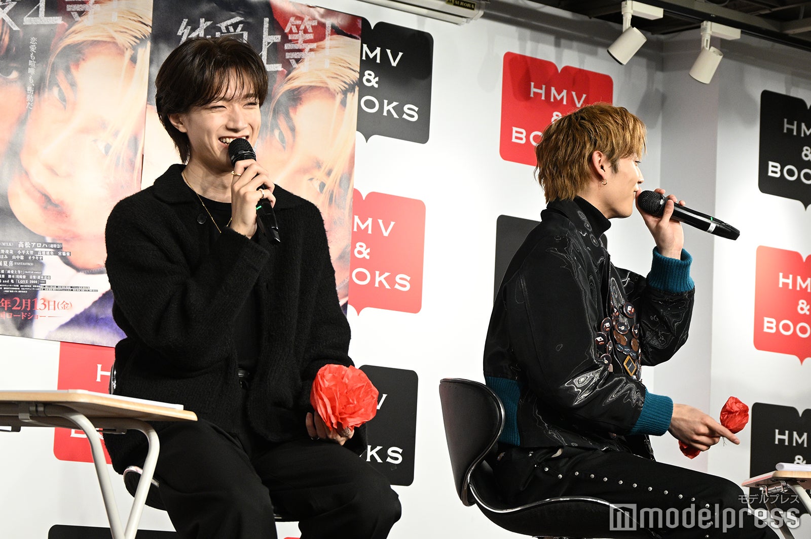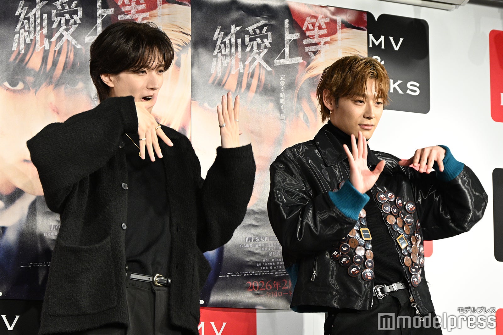 M!LKの山中柔太朗と、超特急の高松アロハ(「高」は正式には「はしごだか」)が2月12日、東京・HMV&BOOKS SHIBUYAにて、映画「純愛上等!」(2月13日公開)のPOP UP SHOP開催記念および映画公開記念のスペシャルトークイベントに登壇。モデルプレスは100人限定の同イベントにWEB独占で潜入。撮影裏話から笑いに包んだモノマネ合戦まで、熱気あふれるレポートを届ける。