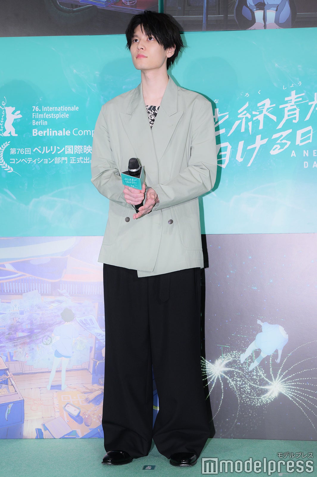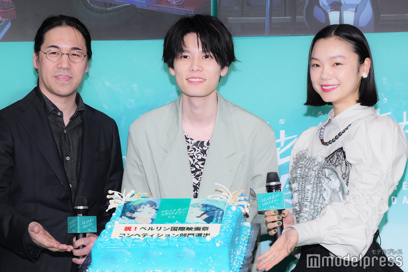 本作は、創業330年の花火工場・帯刀煙火店を舞台に、再開発による立ち退きの期限が迫る中、幻の花火=シュハリと、そこで育った若者たちの未来をめぐる、2日間の物語を描く。この日は本作が第76回ベルリン国際映画祭コンペティション部門に正式出品されたことから、お祝いのケーキが登場する一幕もあった。初監督作品(デビュー作)がベルリン国際映画祭のコンペティション部門に選出されるのは、日本の長編アニメ作品では初の快挙となった。帯刀敬太郎の声優を務めた萩原は、監督とともに参加した同映画祭について「おめでとうございますってなりましたし、ベルリン国際映画祭に行かせていただいて、なかなか普段は感じられない刺激だったり経験をさせていただいたのもすごく嬉しい出来事でしたし、今後の人生にとって忘れられない経験だったり日々を過ごさせていただいたなと思いました。本当に、おめでとうございますって思いました」と喜びを語った。