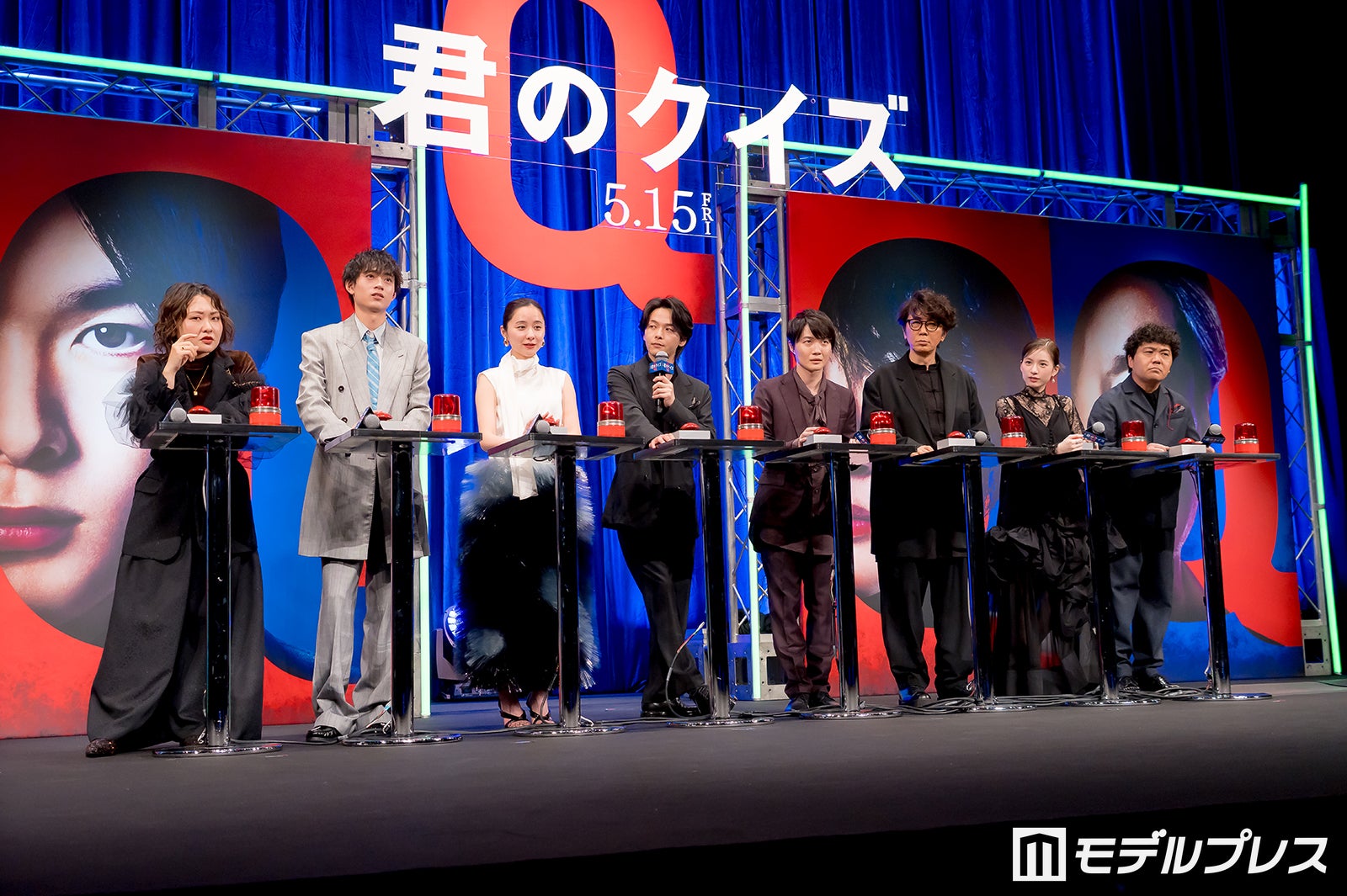 “クイズ界の絶対王者”、主人公・三島玲央を演じた中村は「競技クイズの人たちを『なんであんなに早く答えられるんだろう?』って、本当に魔法かと思っていたんです」と告白。続けて「今回クイズプレイヤーの役を演じるにあたって事前にQuizKnockさんの動画を見漁ったり、伊沢(拓司)さんの著書を読んだり、いろいろしながら勉強をして」と役作りを明かし「そういう積み重ね、戦略、個性、そのもろもろでこの超人かのように見える人たちは出来上がってるんだなって。より解像度が上がりました」と語った。さらに中村は「競技クイズの大会に何人かで出ている時の、早押しボタンを押した後、答えるまでの2〜3秒を見ているのが好きで。そこに人間が出るんです」とコメント。「回答台の前で僕らは細かいことをやっていますので、そのへんも注目して、1回で見切るのが難しい方は10回、20回と見て頂ければと思います」とアピールした。