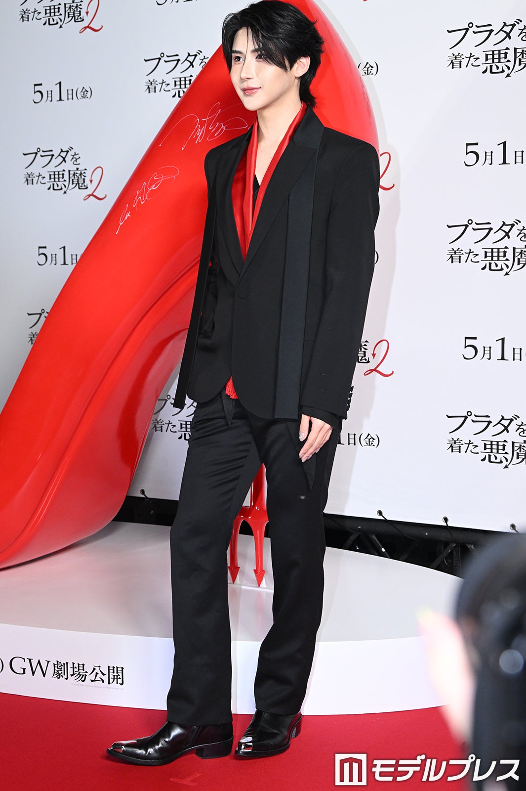 MAZZEL・RAN、赤がワンポイントのブラック衣装「プラダを着た悪魔2」期待ポイント明かすモデルプレス -