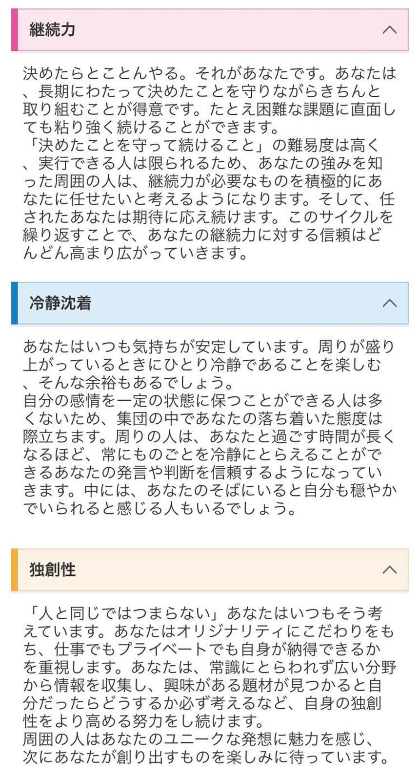 「えーっと、『たとえ困難な課題に直面しても粘り強く続けることができます』って出てる」