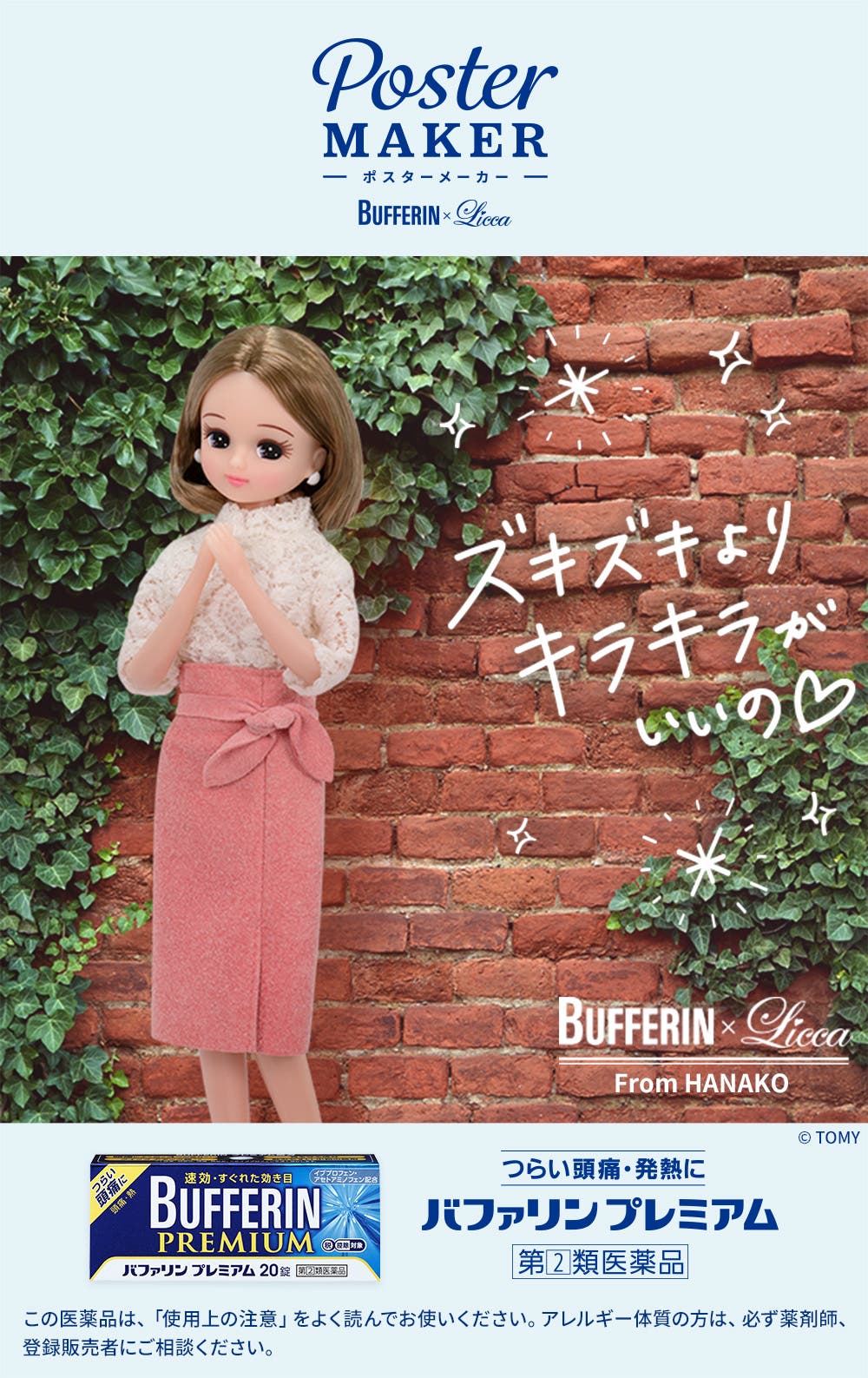 リカちゃん「バファリン」アンバサダーに就任 好みの衣装が選べるポスターメーカーでプレゼントが当たるチャンス!