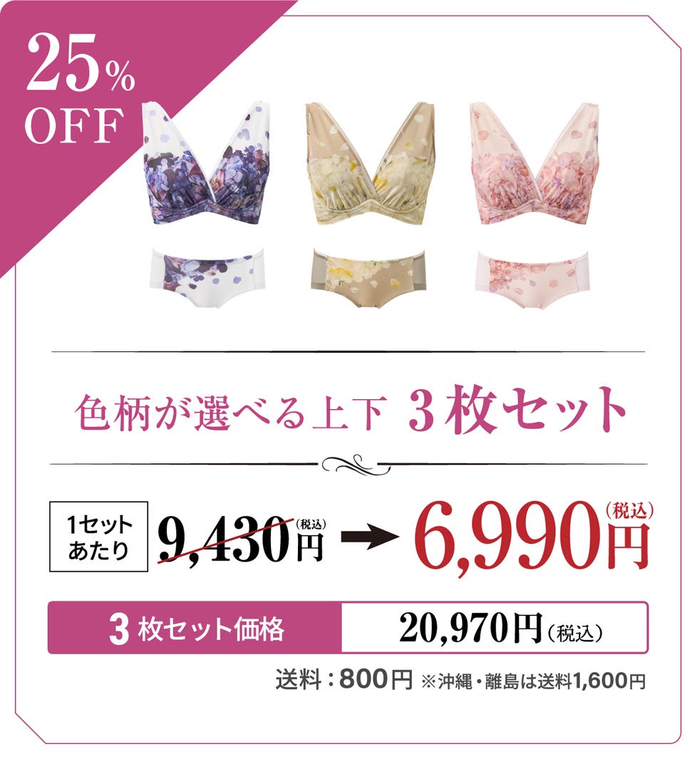 ブラジャーと併せて、ショーツの販売もあり、公式サイトでは使い方に合わせて単品・セットが選べます。