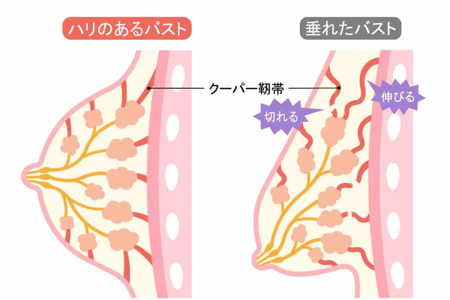胸を支えてくれているのが「クーパー靭帯」と呼ばれる部分。バストのハリや形を維持するための靭帯で、バストケアで特に重要なポイントとなっています。