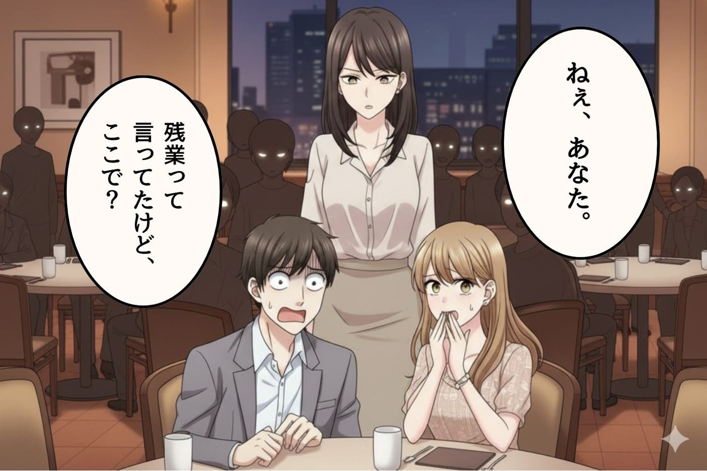 穏やかなホテルのラウンジが…一瞬で“修羅場”に!?「ねぇ…あなた?」妻からの【恐ろしい問いかけ】に夫が真っ青…!