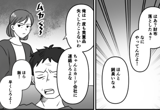 財布を落として落ち込む妻に…夫「で、飯は?」⇒思いやり皆無な夫の態度に【妻の反撃】が炸裂!?