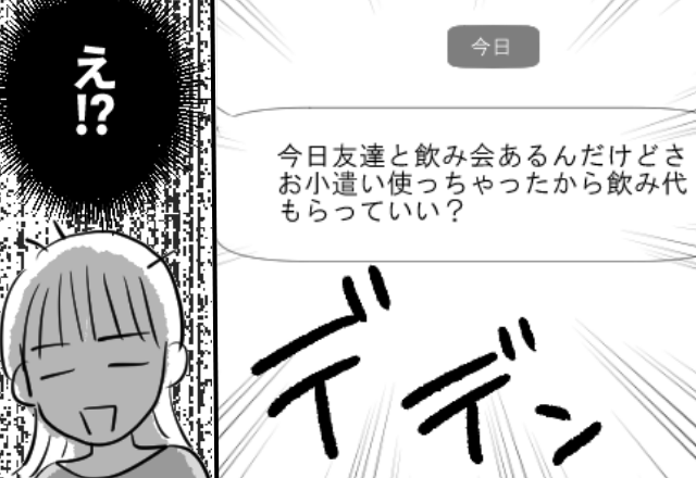 2日でお小遣いを使い切り…“飲み代”を請求する夫。しかし妻が責めると⇒予想外の行動を見せ…妻「なんで!?」