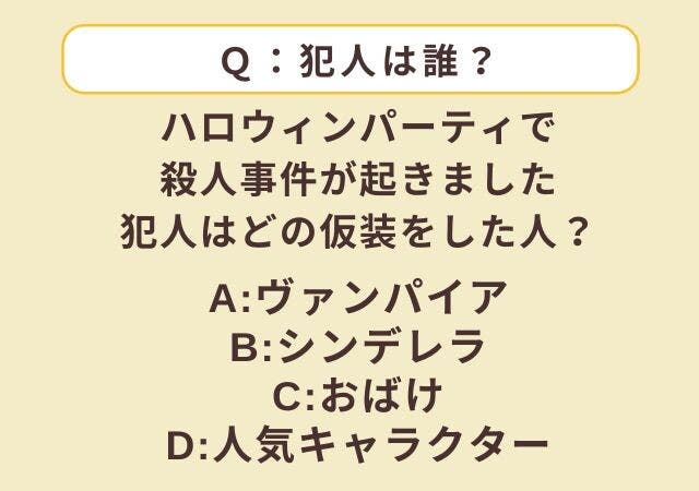10月31日はハロウィン。今ではすっかり人気イベントとして定着しましたね。今回は、そんなハロウィンパーティで起きた殺人事件から、「あなたの変身願望度」がわかる考察テストをご紹介。さっそく犯人が誰か?考えてみてください。