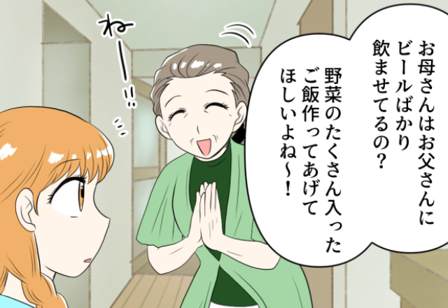 夫のビール腹を見て…遠回しに“嫁をイビる”義母。しかし直後⇒娘が【笑顔で放った言葉】に…義母が青ざめる!?
