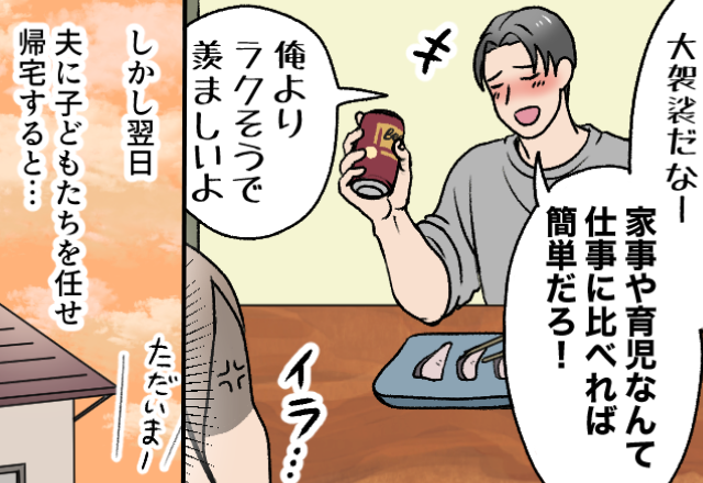 「ラクそうで羨ましい」家事育児を軽視する夫。しかし翌日⇒妻が病院から帰宅すると…「な、なによこれ!」