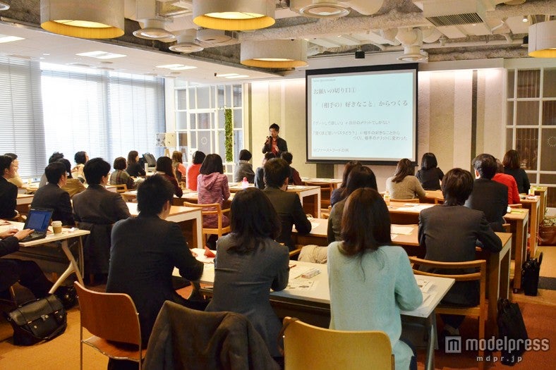 朝活タイムの7時からスタートした今回の特別講義だが、女性の参加者のみならず男性も多数参加。講義では、参加者同士で自己紹介をしたり、コミュニケーションをとるコーナーも設けられたが、初対面同士でも和やかムードで会話が弾み会場は盛り上がりを見せていた。
