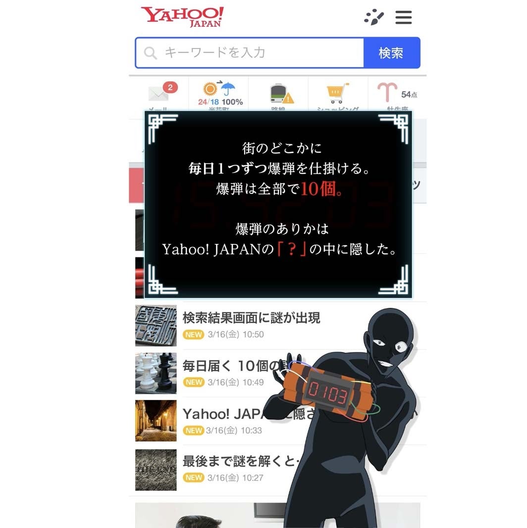 「Yahoo! JAPAN」アプリに毎日仕掛けられる爆弾をめぐる、検索画面を使ったこの謎解きイベント。子供から大人まで夢中になるのもわかりますね。映画公開までウズウズしていた私にとっても、毎日の楽しみがひとつ増えました!