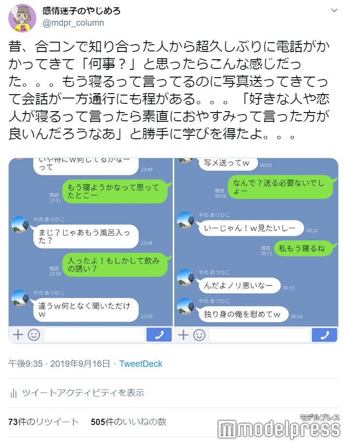 男性に「重たい」と思われる恐怖のLINEベスト5 わかっていても送っちゃう…【2019年やじめろTwitter特集】モデルプレス -