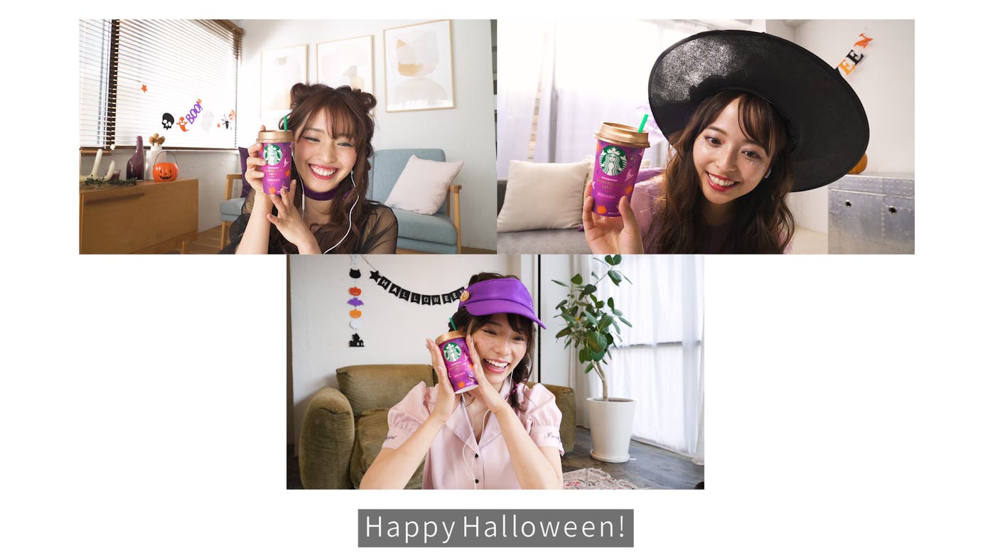 スターバックスのチルドカップシリーズから22日、ハロウィンシーズン限定の「スターバックス(R) スウィートポテトラテ」が登場!スターバックスもハロウィンも大好きな3人が、一足先にオンラインでハロウィンパーティーを開催。気になる味わいと、可愛くてオンラインで映えるアイディアも一緒にご紹介します!