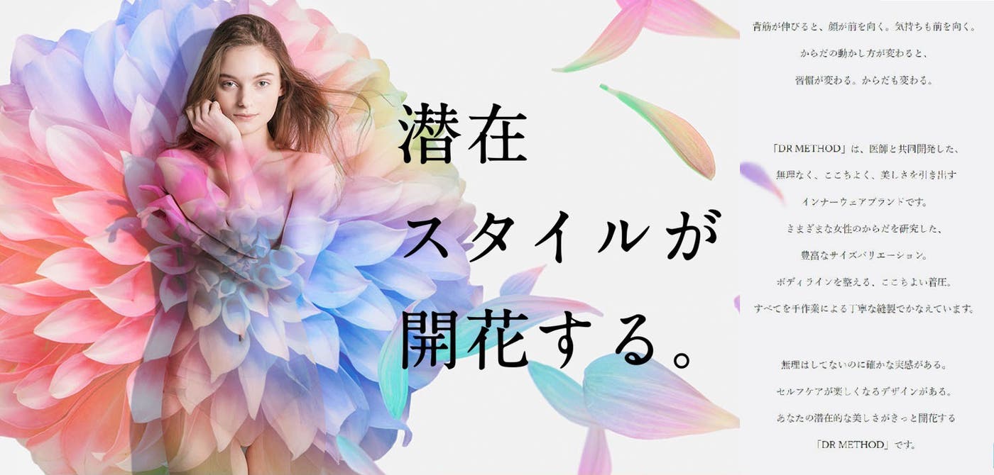 スリビーを販売しているDR METHOD(ドクターメソッド)は、「潜在スタイルが開花する。」をブランドコンセプトに、さまざまな補整下着を発売。「地味…」「人に見せたくない…」という補整下着のイメージを一新し、オトナ女子の間で話題のブランドなんです!