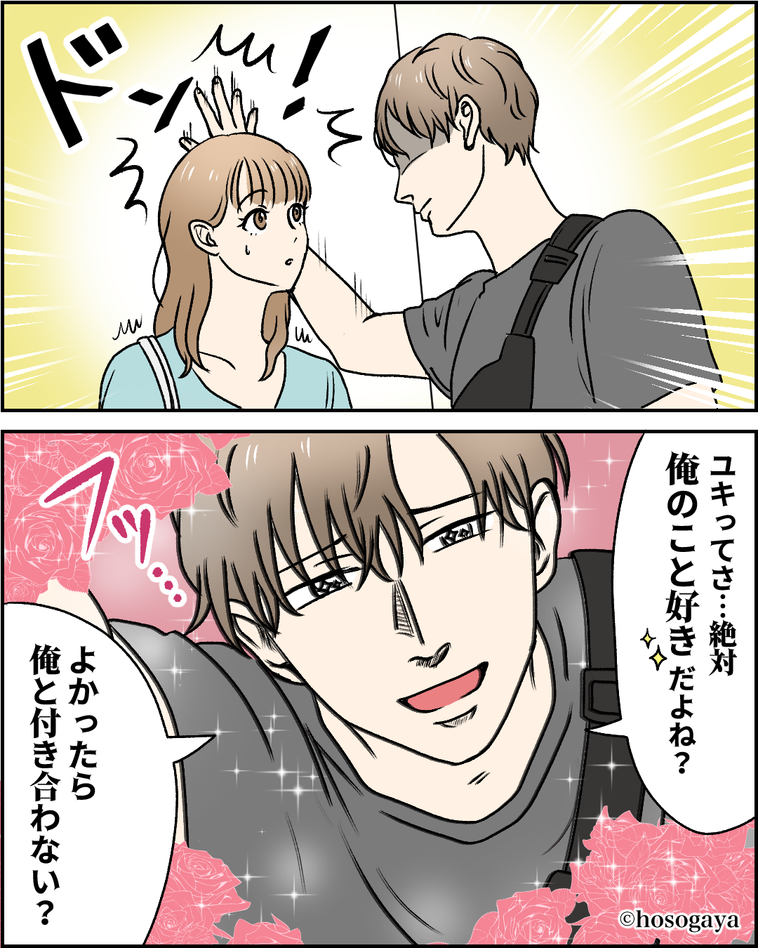 バイト帰り…意中の女子に“壁ドン”をかます大学生男子!?直後「絶対俺のこと好きだよね?」自信満々に告白した結果。