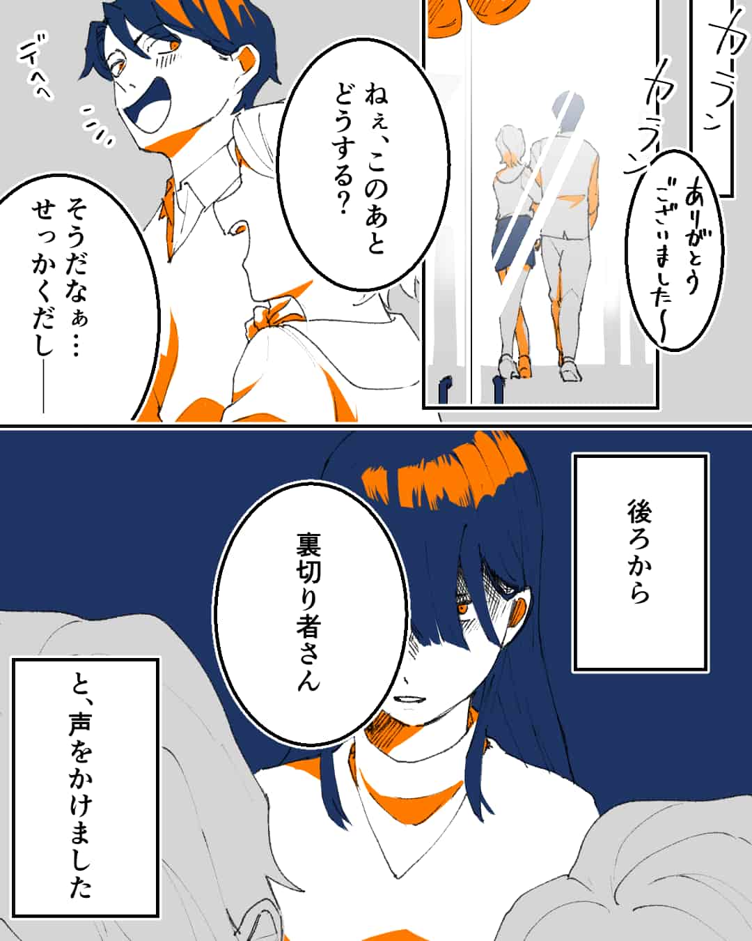 しかし退店時、私はここぞとばかりに彼らのもとへ行き、背後から「裏切り者さん♡」と声をかけてやったんです。