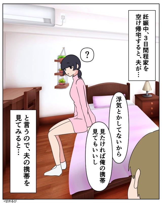 3日ほどして自宅に戻ると、夫はなぜか自信満々に「浮気とかしてないから。スマホ見てもいいし」と、突然言ってきたのです。