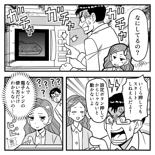 電子レンジの前で…